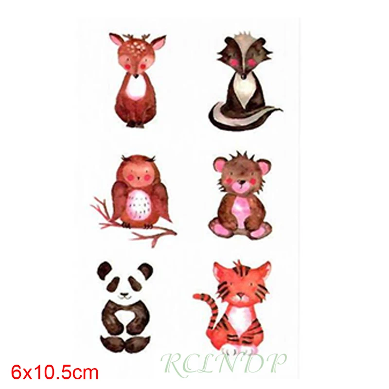 Водостойкие Временные татуировки, панда, тигр, Сова, олень, лиса, медведь, животное, флэш-тату, маленькие татуировки для женщин, мужчин, детей