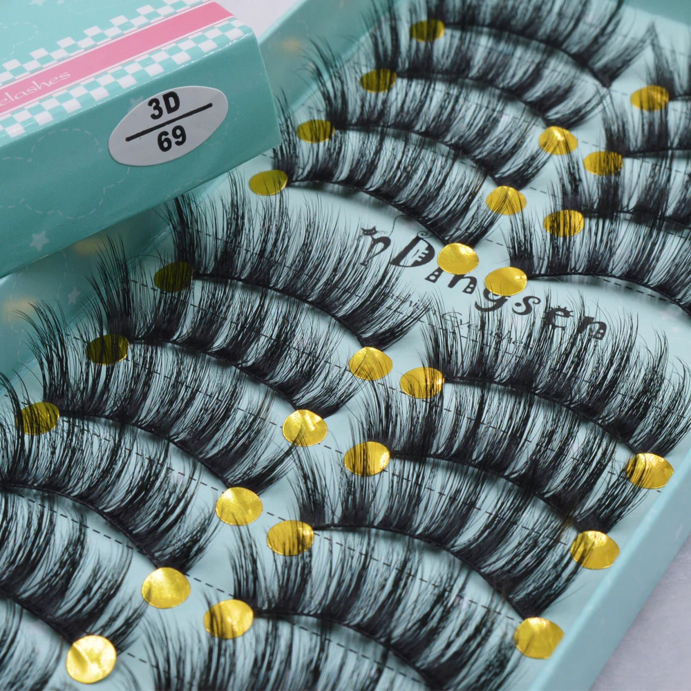 Накладные ресницы из искусственной норки, мягкие натуральные накладные ресницы с перекрестными пушистые ресницы, 10 пар, инструменты для макияжа глаз