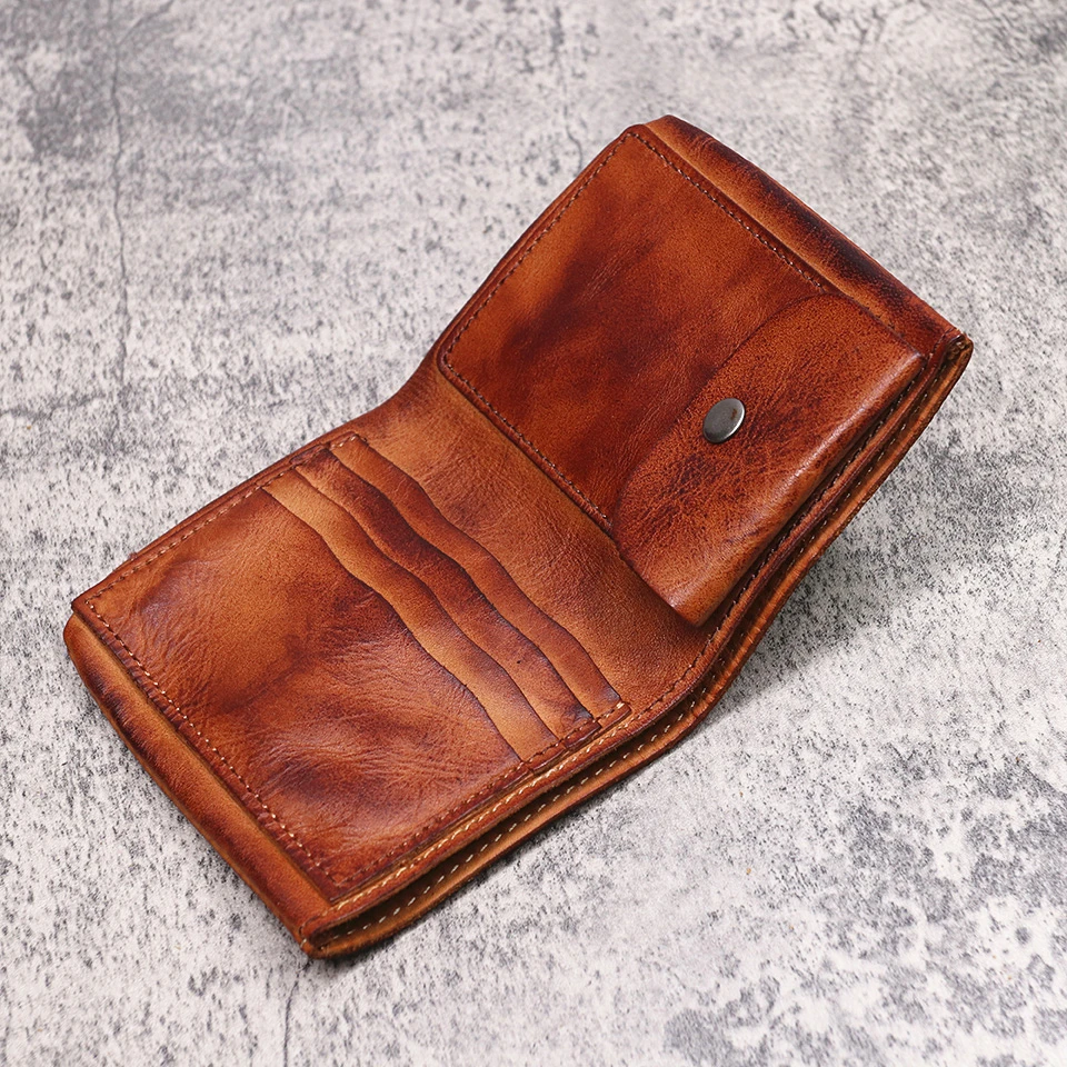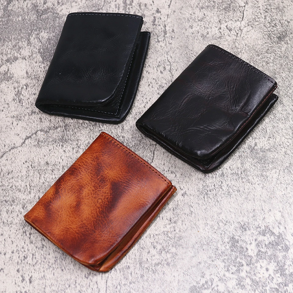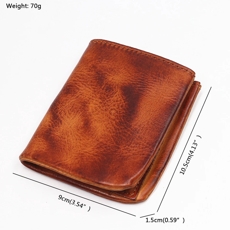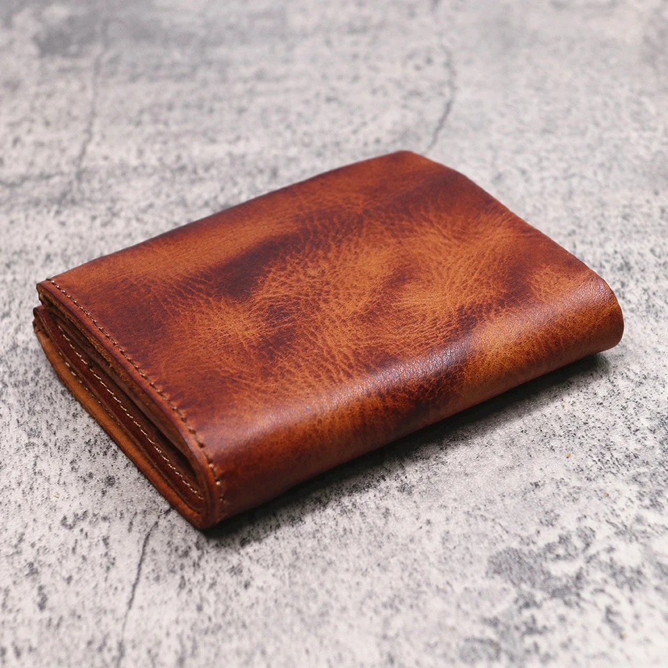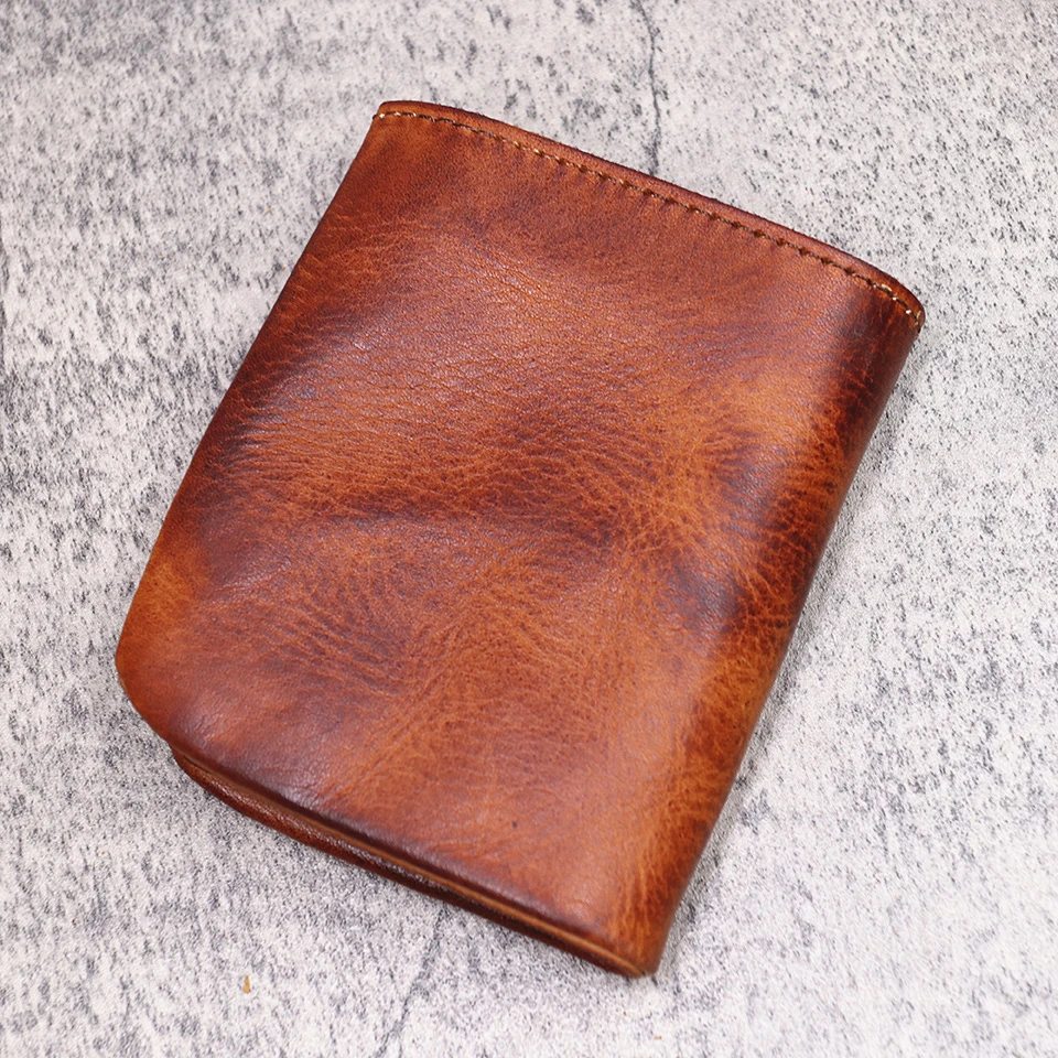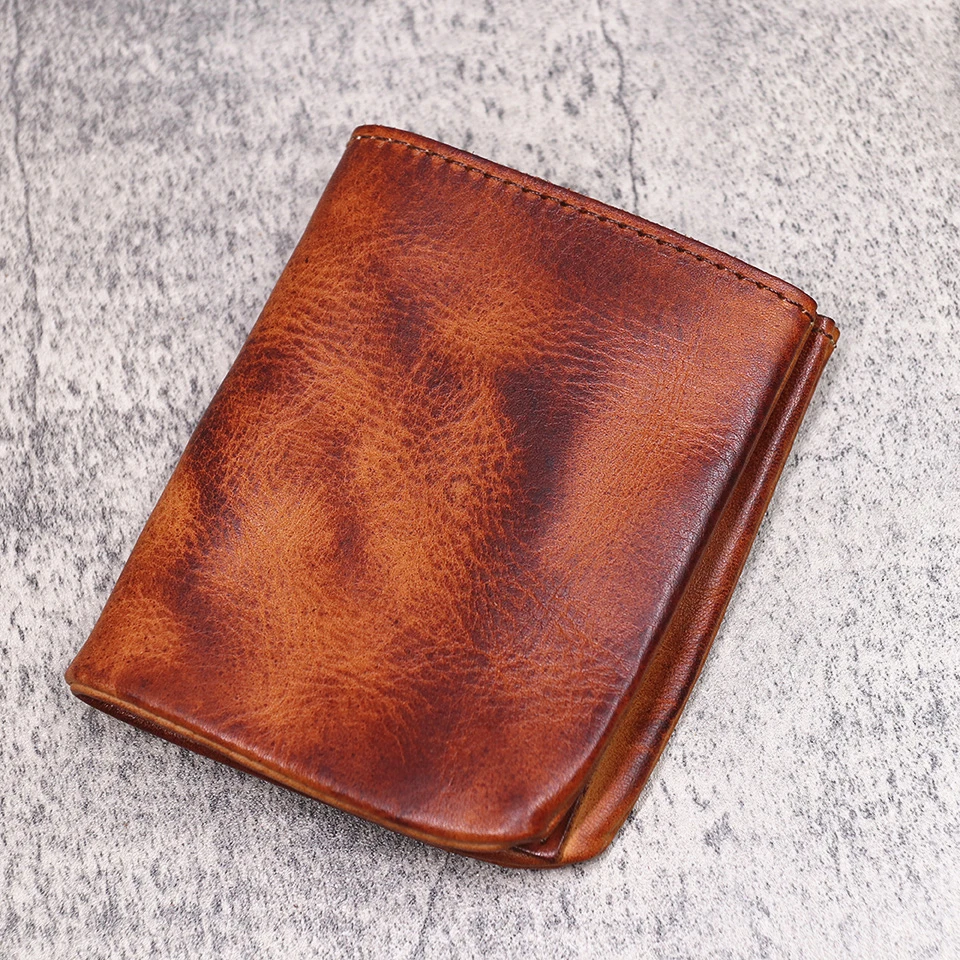 Кошелек мужской из натуральной кожи, винтажный, ручной работы, короткий, складной, компактный, с отделением для карт и монет