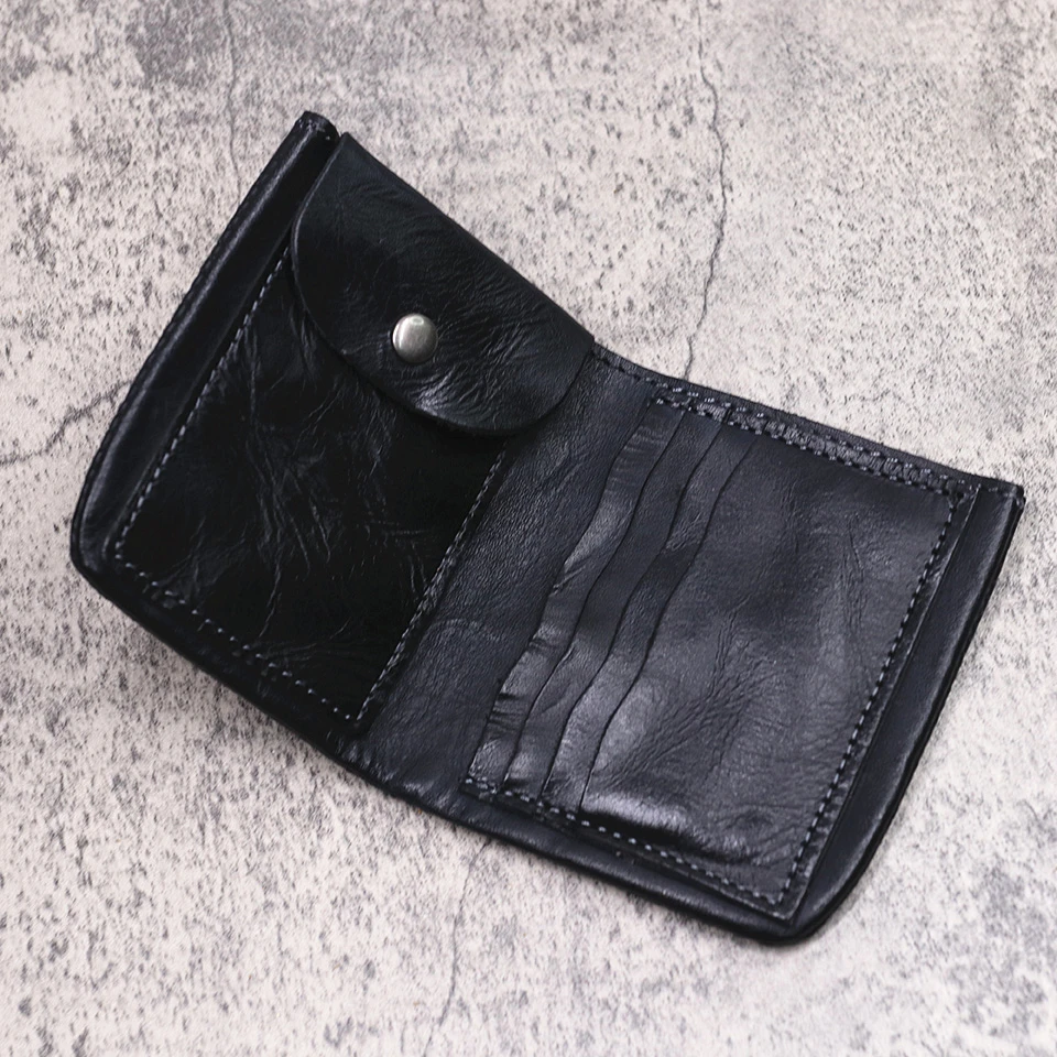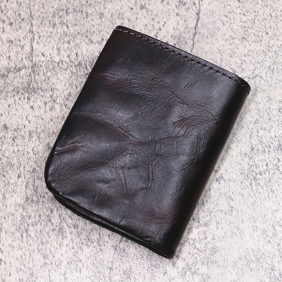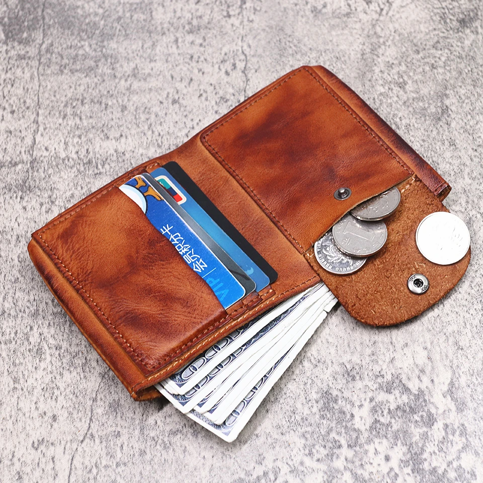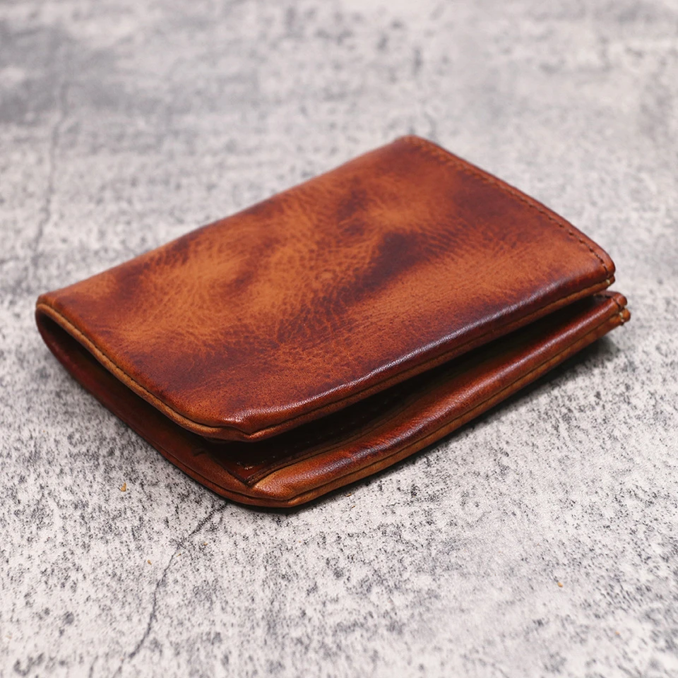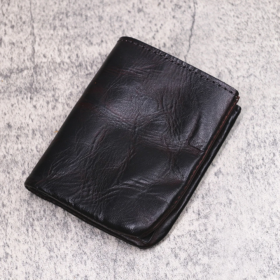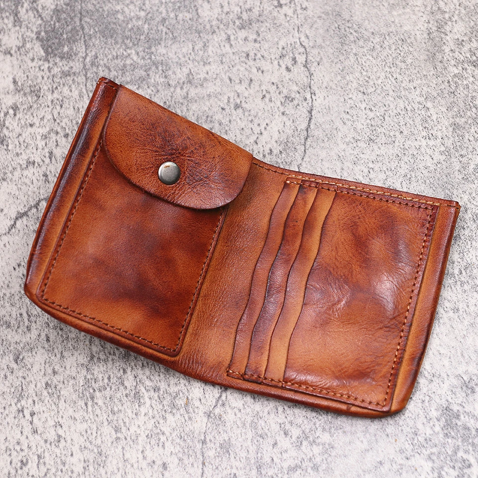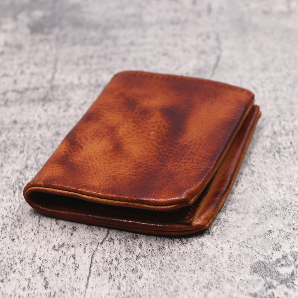 Кошелек мужской из натуральной кожи, винтажный, ручной работы, короткий, складной, компактный, с отделением для карт и монет