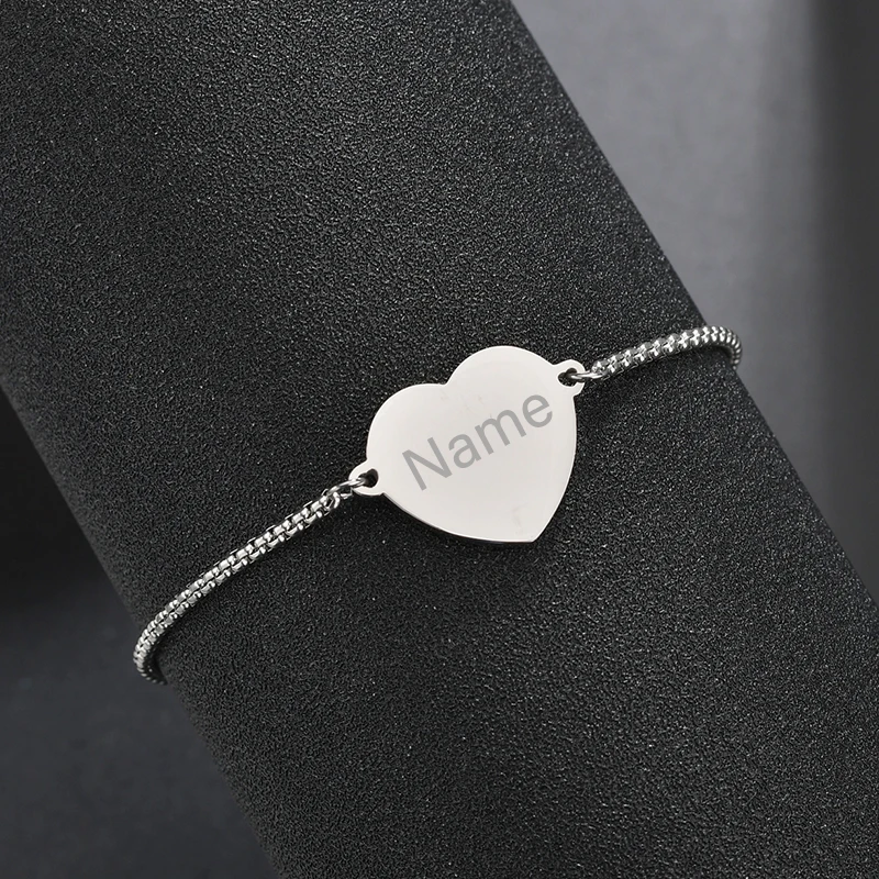 Браслет с гравировкой имени и имени для женщин и детей, регулируемый браслет из нержавеющей стали под заказ, с ID-сердцем, подарок на день рождения