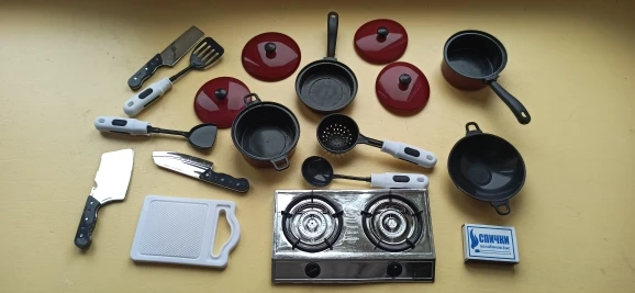 сами игрушки не плохие на вид, но лопатки и ложки очень хрупкие и не эластичные и сломались у основания ручек когда ребёнок играл, ещё они как то специфически пахнут, ваняют, газавая плита простая из пластмаса, не имеет батареек, а каструльки и сковородки очень хорошие