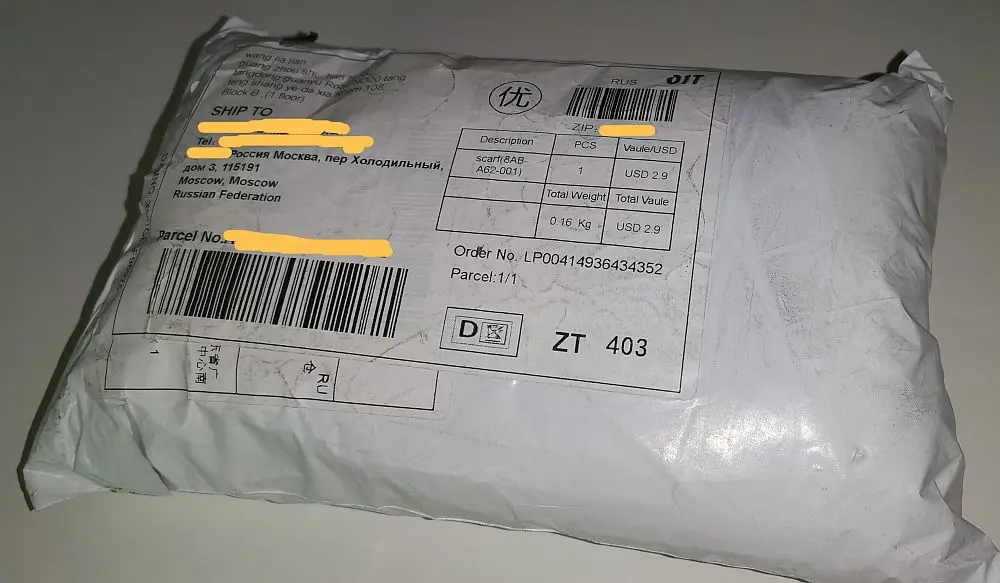 Страна: RU Color: 001 Доставка: Cainiao Expedited Economy 09.09.2020