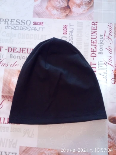 Доставка за 10 дней в сборной посылке. Шапка сшита ровно, материал приятный. На обхват головы 58-59 см достаточно свободна. Если обхват головы меньше, будет спадать. Глубина шапки очень большая, для меня это минус.