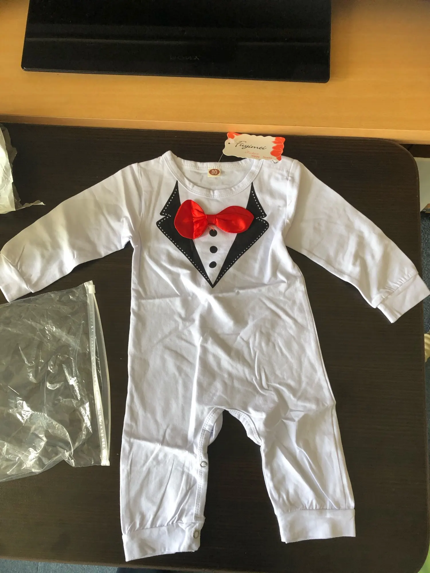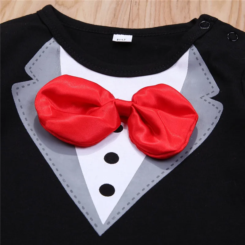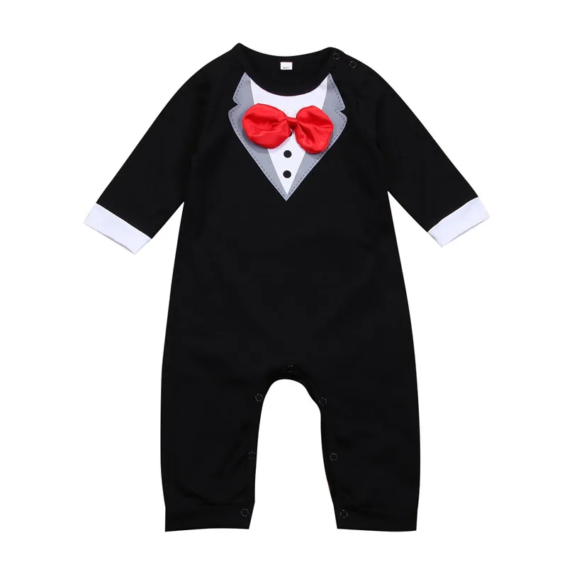 Комбинезон для мальчиков 0-24 месяцев, черный, белый, с длинным рукавом, с галстуком-бабочкой, официальный, комбинезон для новорожденных, комбинезон для мальчиков, для малышей