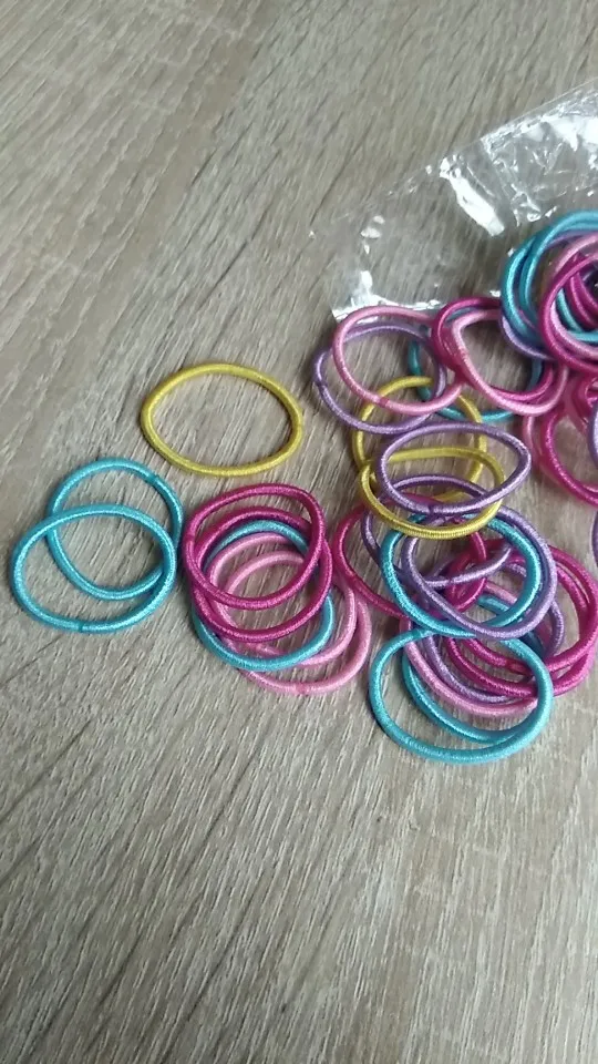 Посылка шла 2 месяца, заказ кинули в почтовый ящик. Резиночки маленькие, тоненькие, но плотные и упругие. На тонкие волосы очень хорошо. Покупала своей 3хлетней дочери, на один оборот делаю хвостики и потом на хвостик надеваю любой бантик на резиночке. Получается не так громоздко. Количество резиночек соответствует заявленному. Думаю, надолго хватит. Товар и продавца рекомендую.