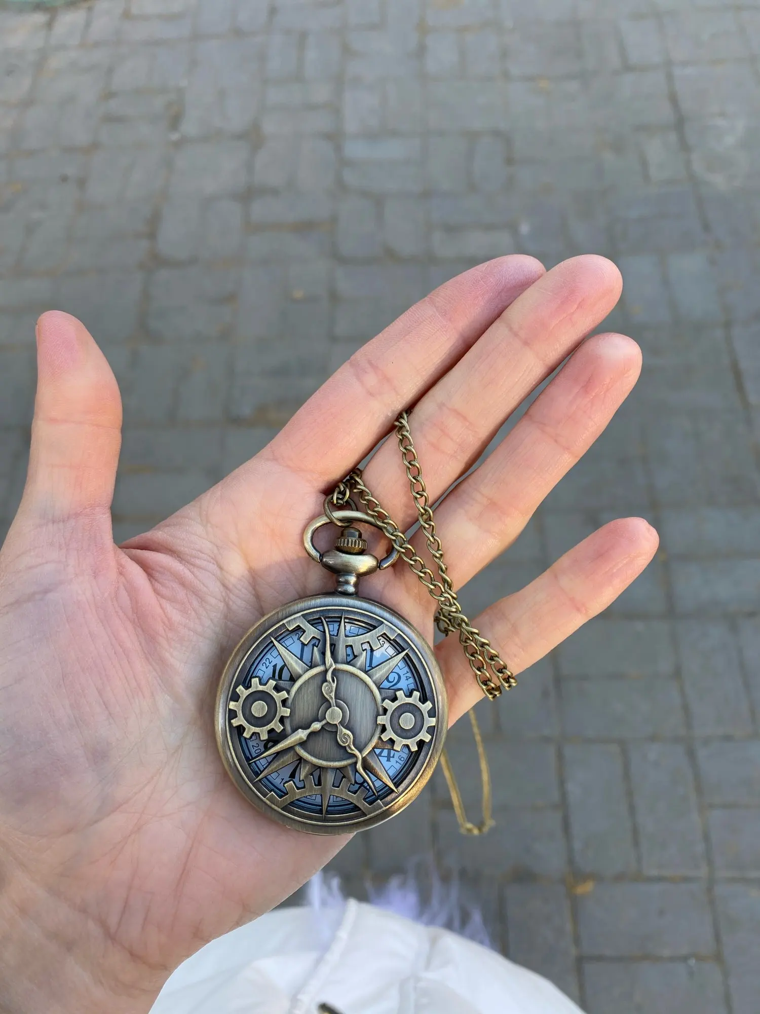 Антикварные Мужские кварцевые карманные часы в стиле стимпанк с отверстиями под бронзу, с карманными часами на цепочке, Подарочные часы для мальчиков
