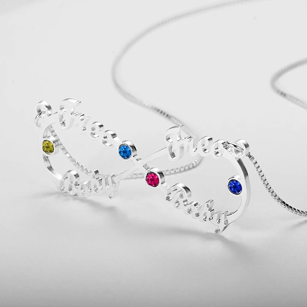 Ожерелье бесконечность с камнями по месяцу рождения, ожерелье на заказ, любое имя Подвеска Украшения Подарки для женщин