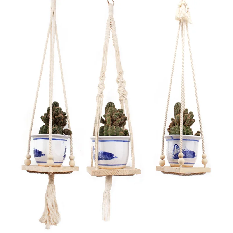 Корзина для цветов, держатель для растений макраме, винтажная подвесная веревка с узлами, украшение для сада и дома, подвеска для растений из макраме