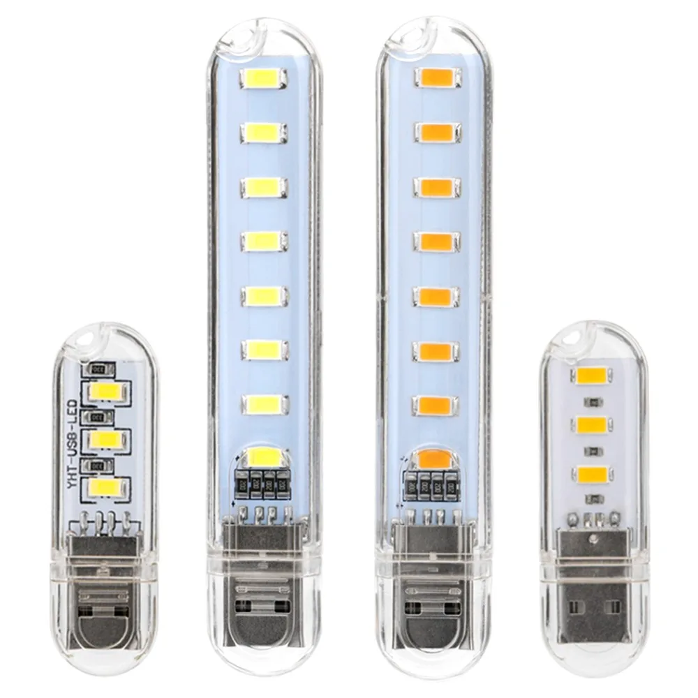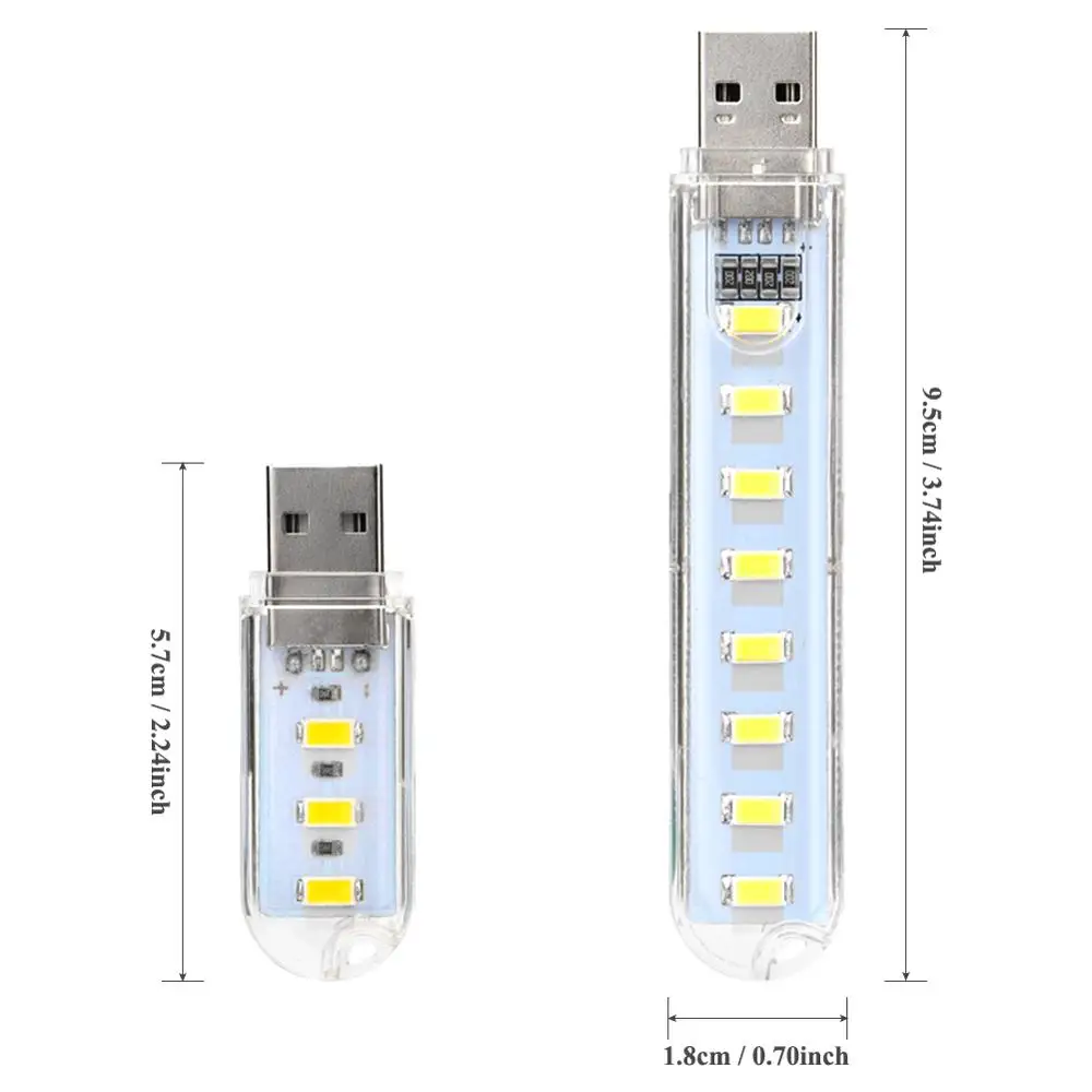 Светодиодный ночник, 12 шт., портативный, 3 светодиодный s 8 светодиодный s 5 в USB, настольная лампа для чтения, гибкий удлинитель, адаптер, книжный светильник, теплая белая лампа