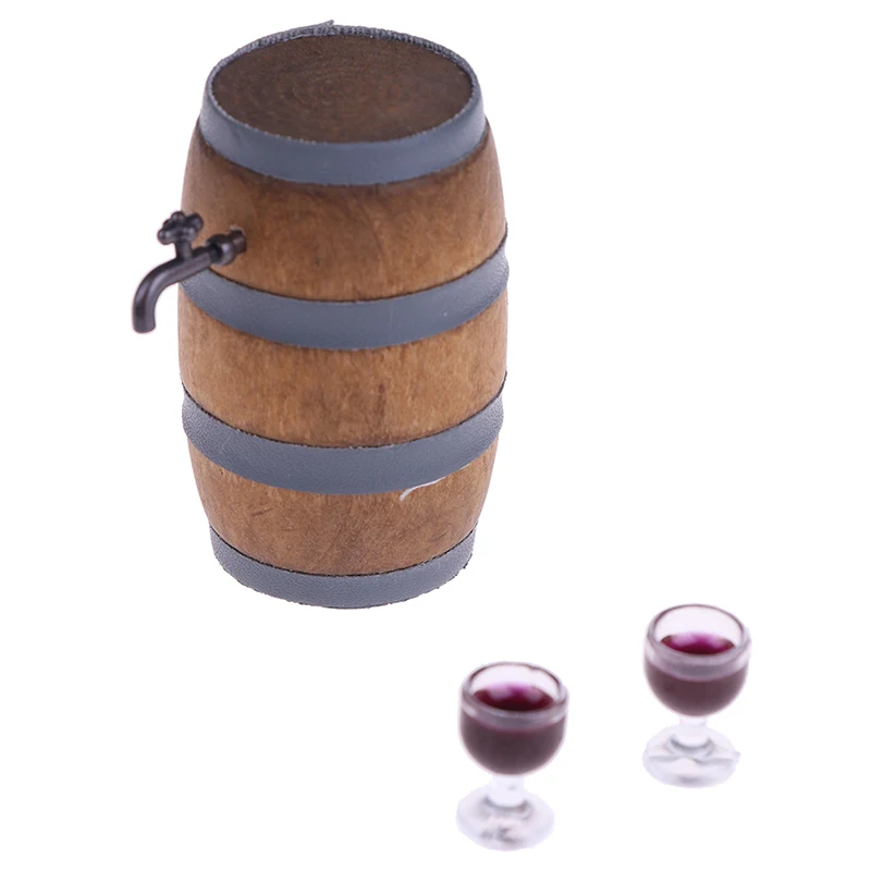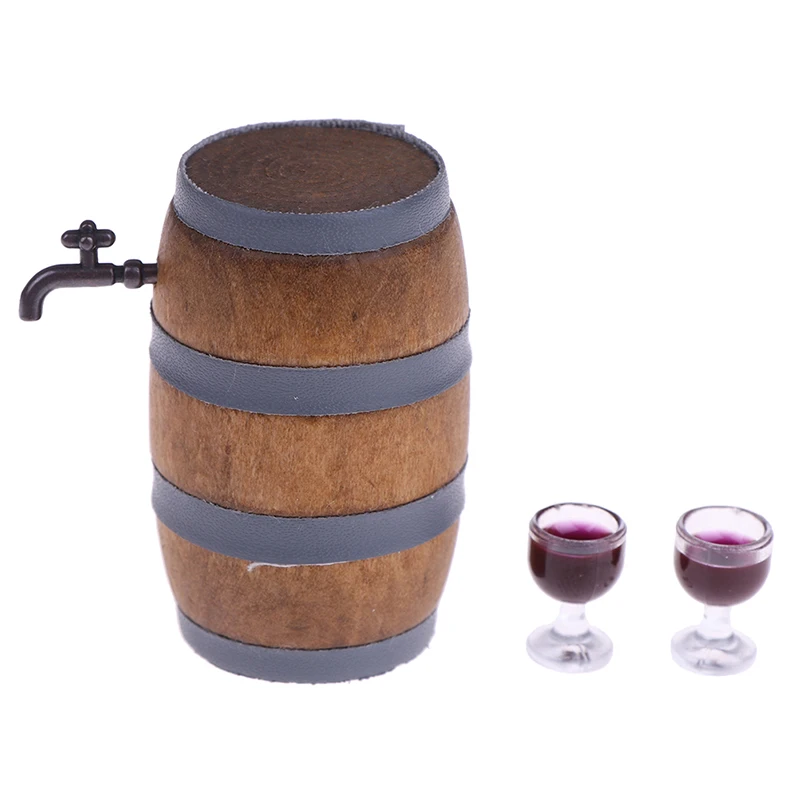 Новинка в масштабе 1:12 Миниатюрный Кукольный дом винный пивной бочонок пивной верхушка и бокал для вина набор для украшения кукольного дома аксессуары