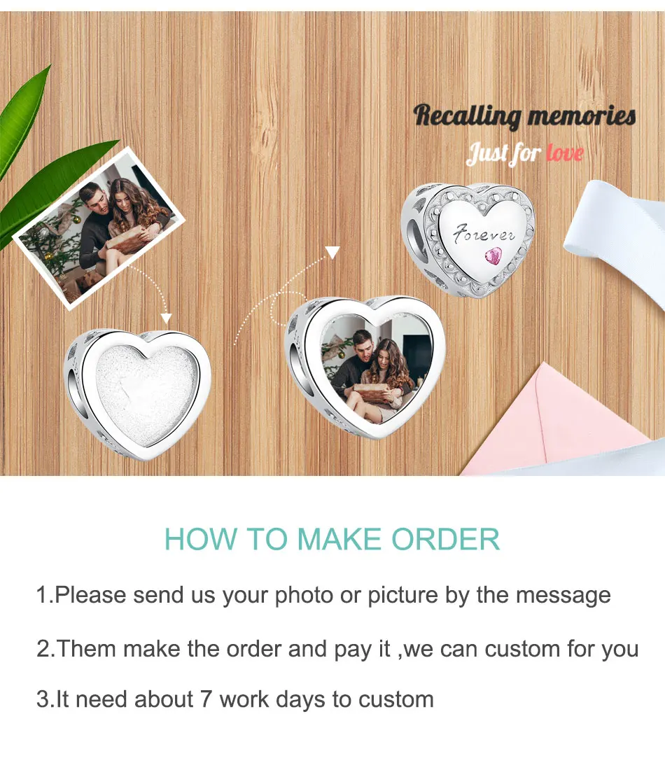 1. Обслуживание: Мы предоставляем бесплатные пользовательские фото-услуги. 2. Метод: вы можете просто отправить фотографию, которую вы хотите, непосредственно в сообщении. 3. Время доставки: заказное очарование должно быть настроено и нужно около 5-10 дней, чтобы произвести, надеюсь, что мой ценный клиент может понять. Пожалуйста, не волнуйтесь, когда очарование закончится, мы отправим быстрее. 4. Если у вас есть какие-либо вопросы, пожалуйста, свяжитесь с нами, мы будем рады решить проблемы для вас.