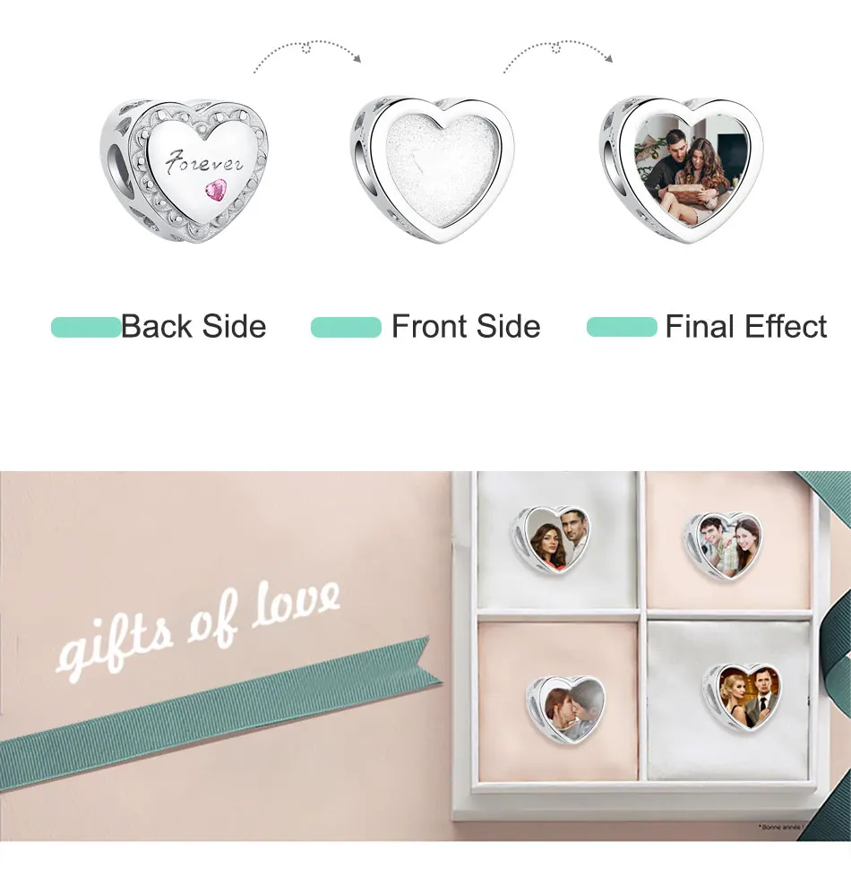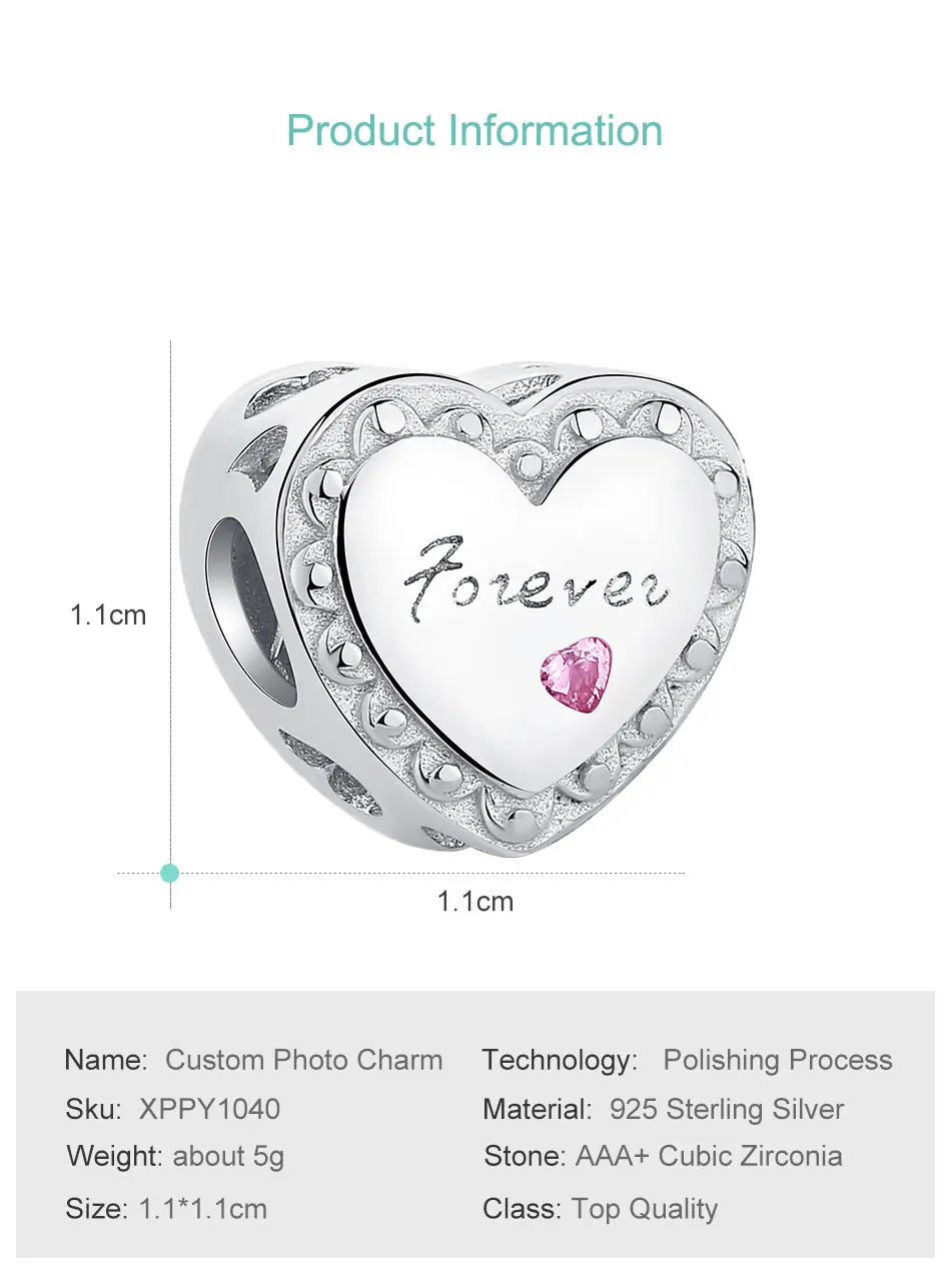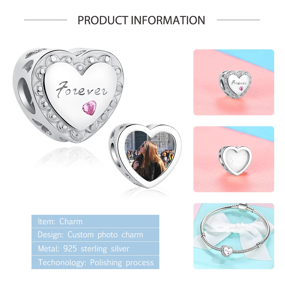 На заказ фото любовь навсегда сердце Шарм бисера Fit оригинальные Подвески Браслет из стерлингового серебра 925 пробы бусы для женщин DIY berloque ювелирные изделия