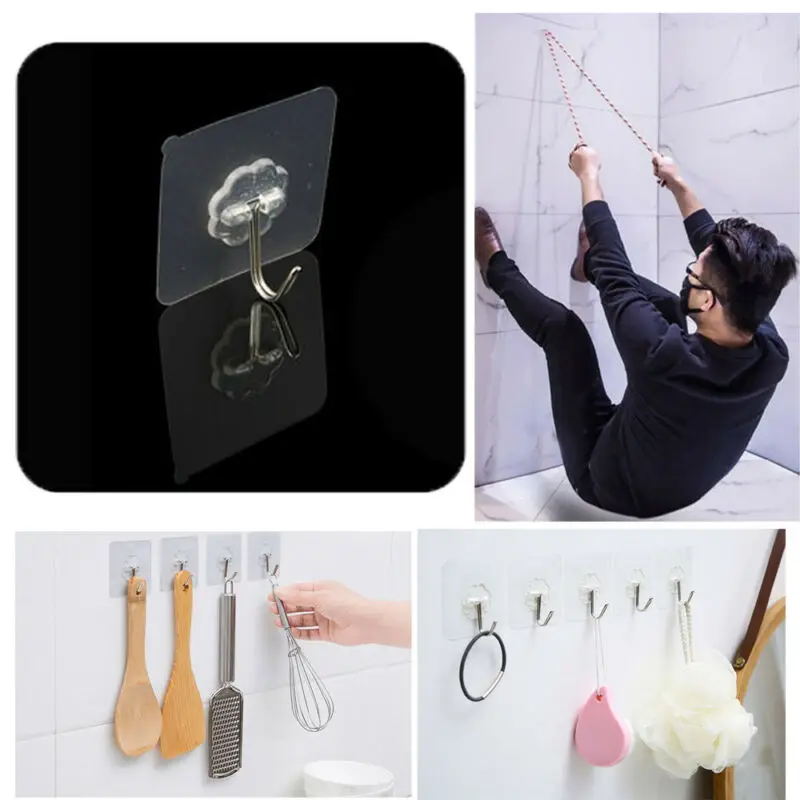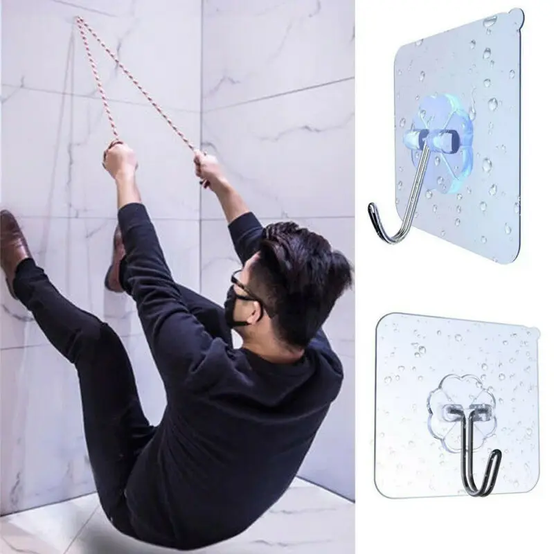 Универсальные крючки без сверления прозрачные, самоклеющиеся, многоразовые, водонепроницаемые, маслостойкие, не оставляет следов на удалении