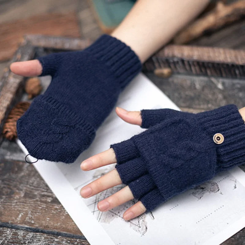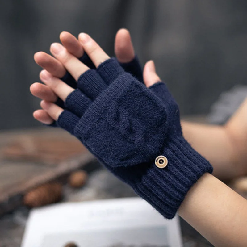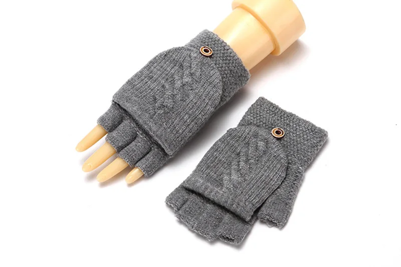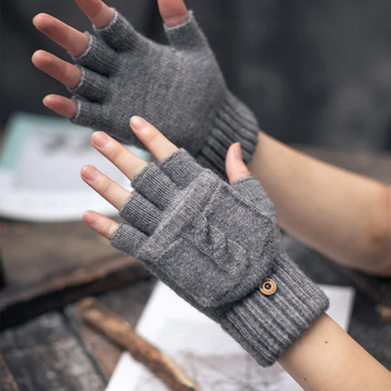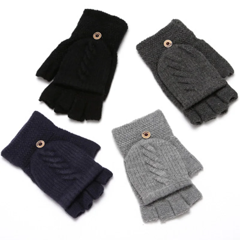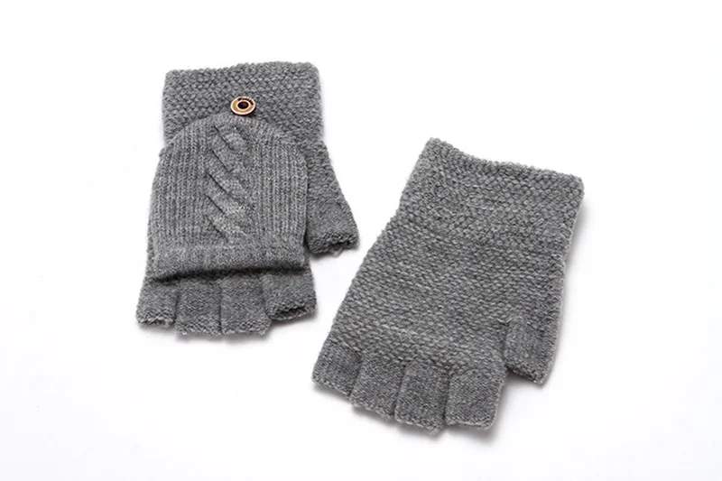 Женские вязаные перчатки с откидной крышкой, зимние однотонные студенческие перчатки с бархатным утеплителем, E49