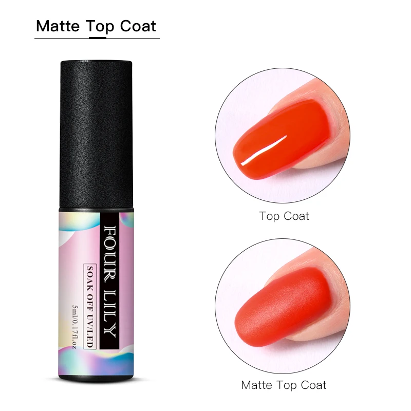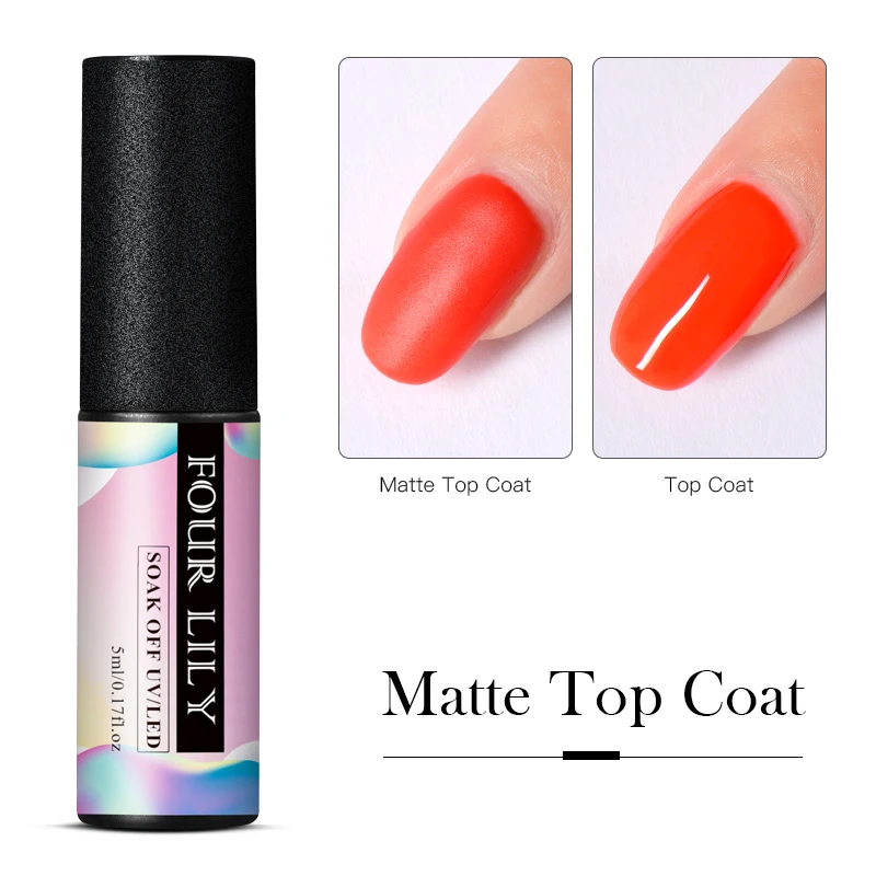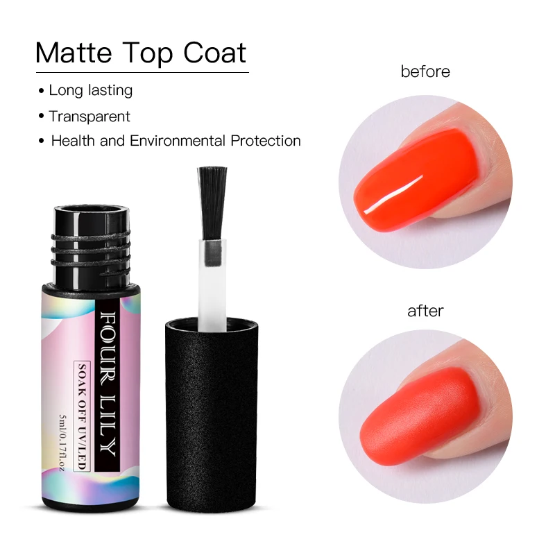 Матовое верхнее покрытие Four Lily 5 мл, стойкое, легкое нанесение, Гель-лак для нейл-арта прозрачный, удаляемый замачиванием, УФ-лампа, Гель-лак