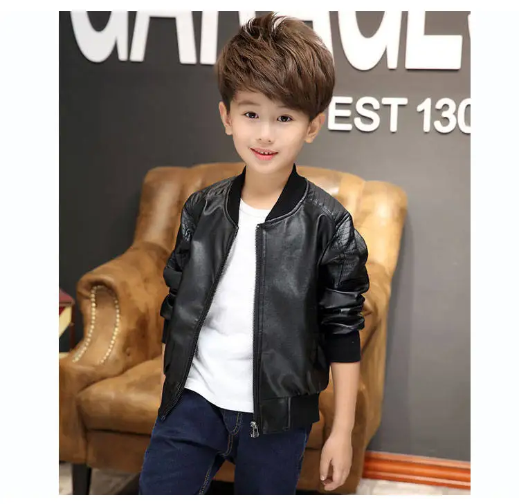 Куртка ULKNN из искусственной кожи, с круглым вырезом, на возраст 1-13 лет, Осень-зима