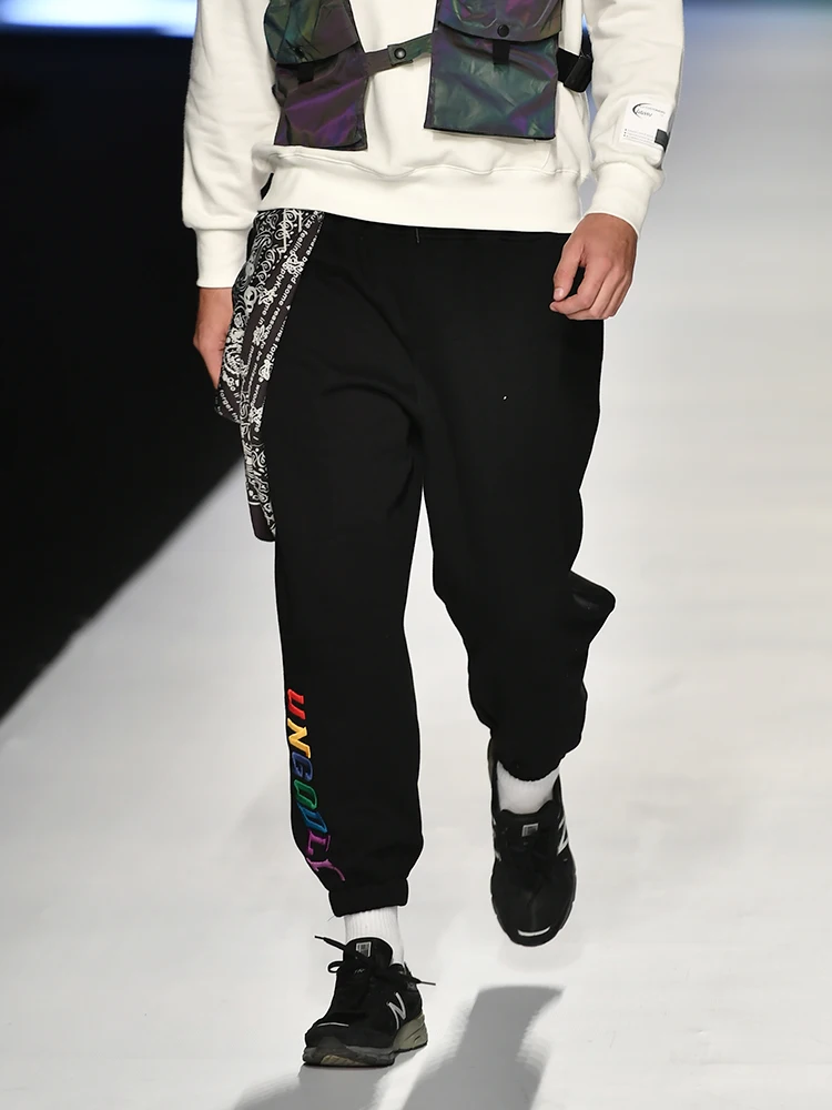 Мужские спортивные штаны с вышитым буквенным принтом, свободные штаны в стиле хип-хоп для бега, модные зимние штаны-шаровары для мужчин 93454W, 2020