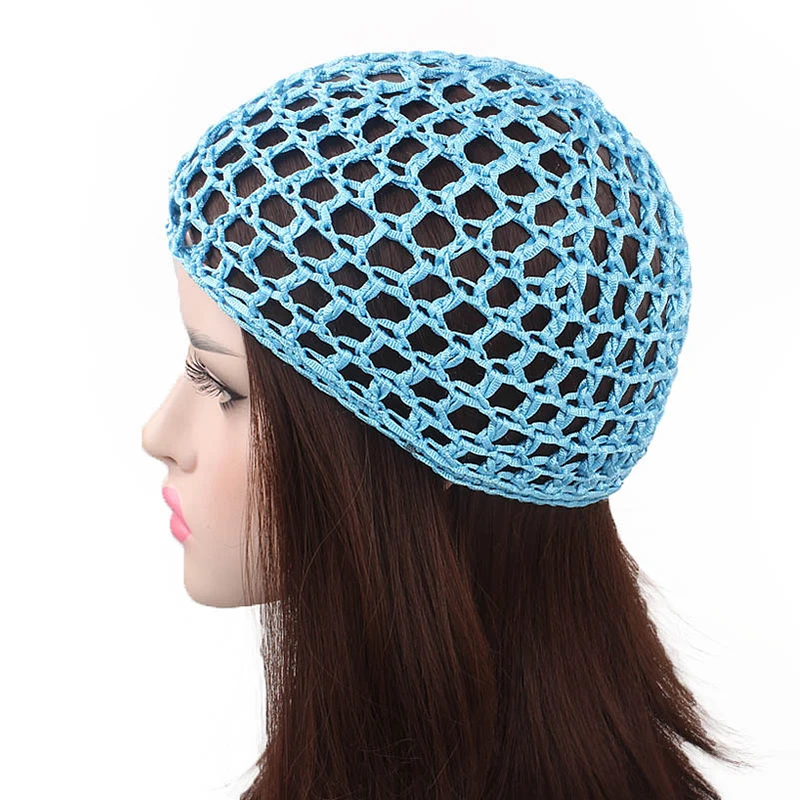Женская сетчатая вязаная крючком шапка, однотонный спальный чехол с ночным мотивом, тюрбан