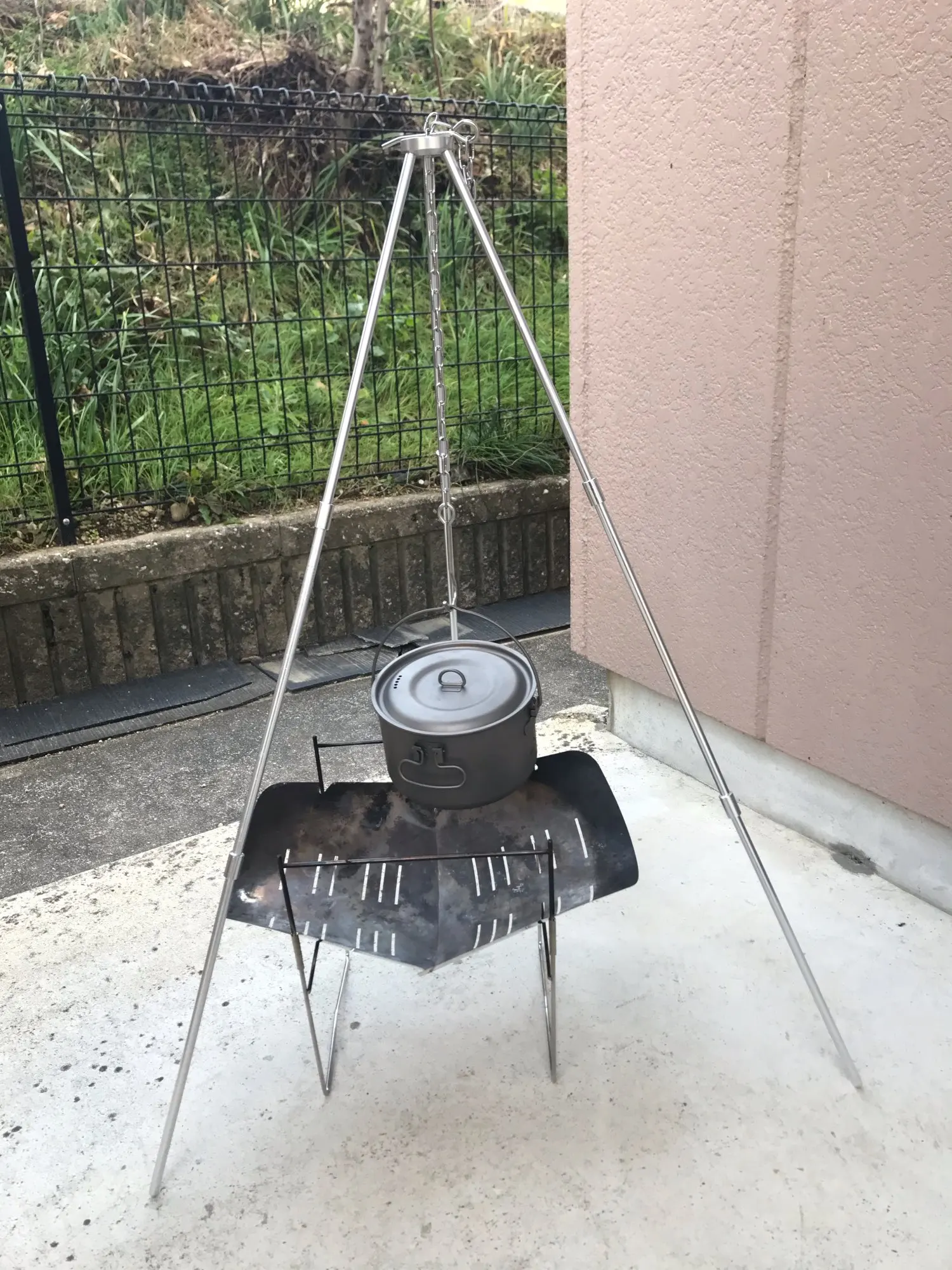 Отличная тренога, котелок на 5 литров выдерживает. Рекомендую.
