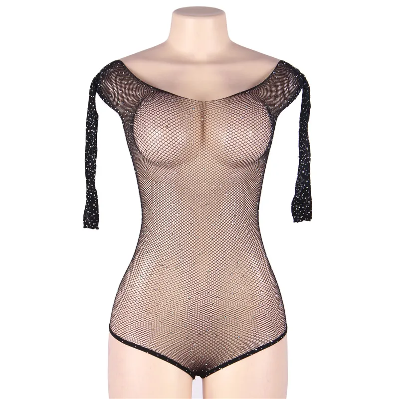 Боди женское, прозрачное, с бисером, с открытыми плечами и бриллиан...