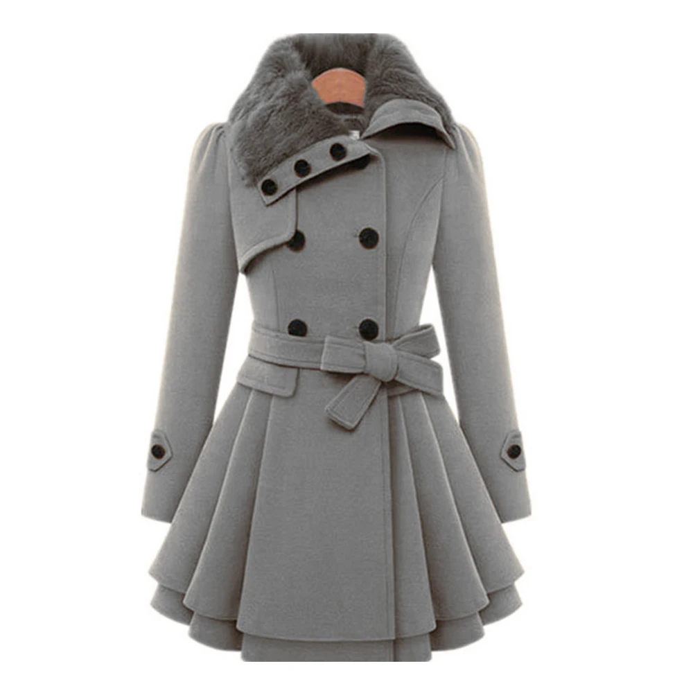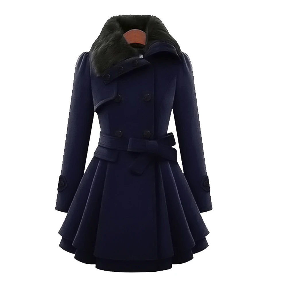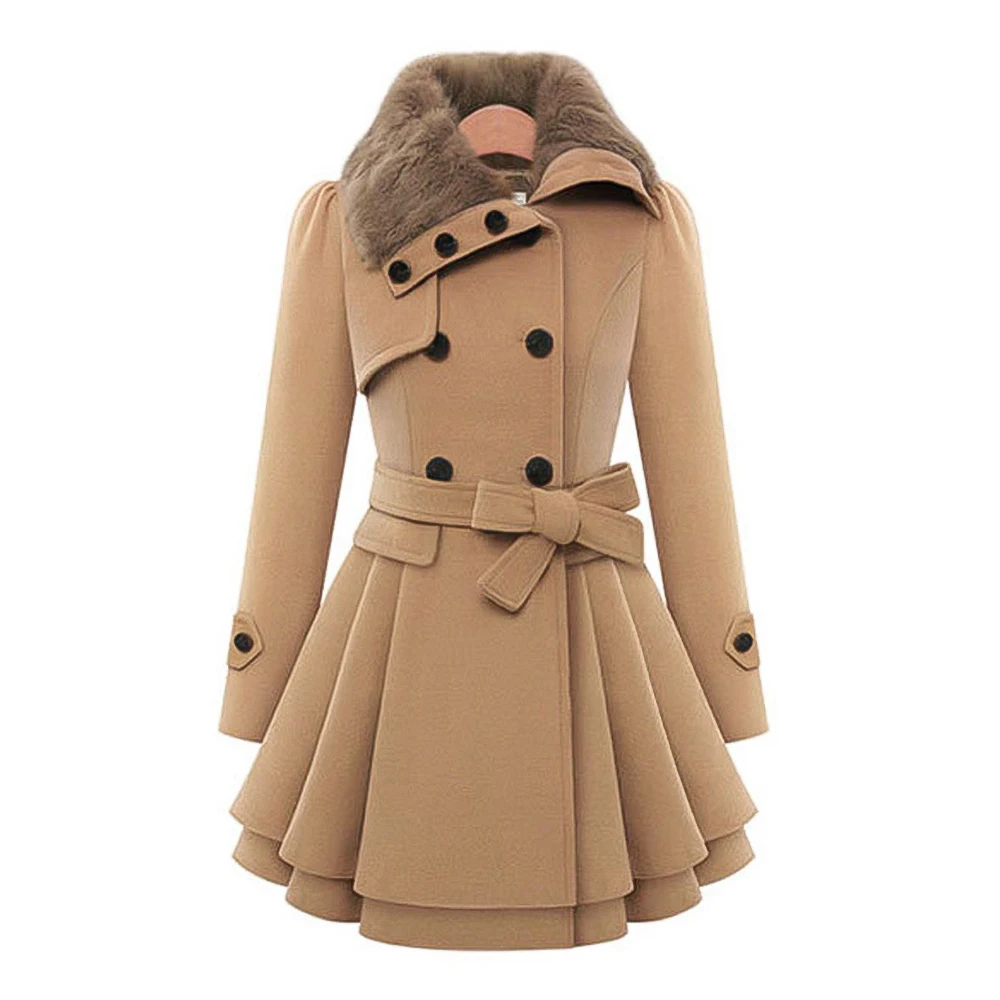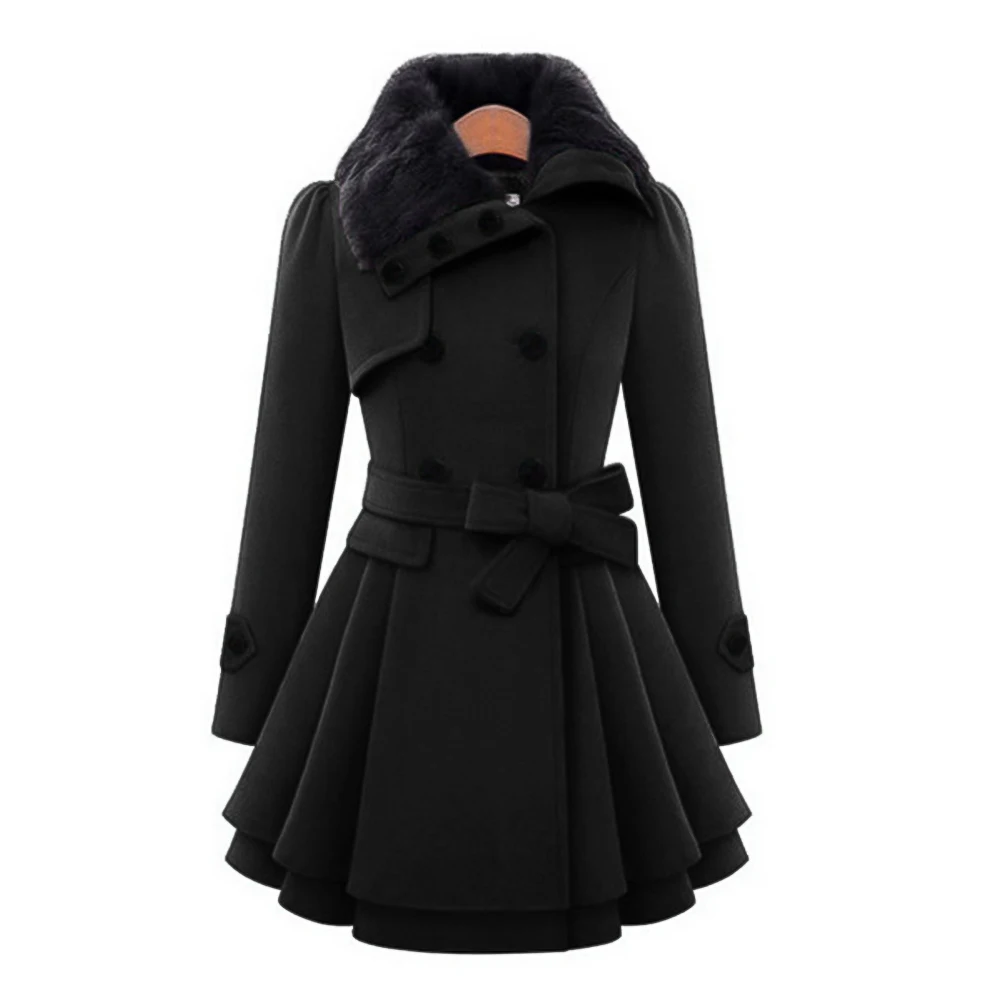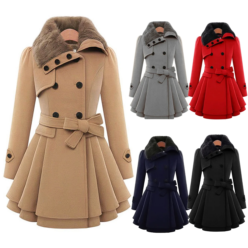 Осенне-зимняя женская модная двухбортная теплая куртка Wipalo с искусственным мехом и отворотом, толстое шерстяное пальто с поясом, верхняя одежда