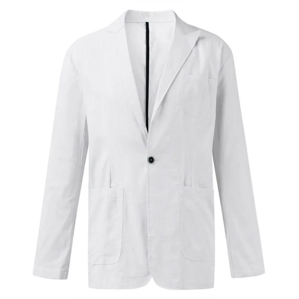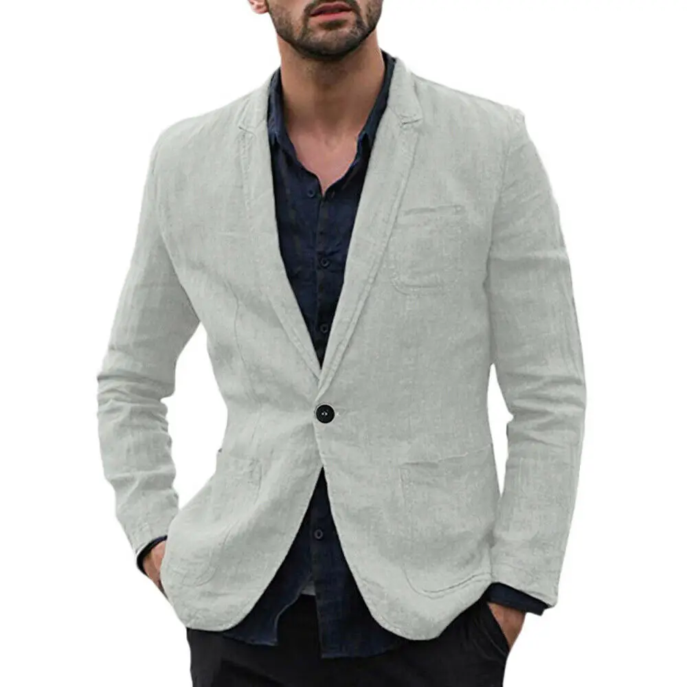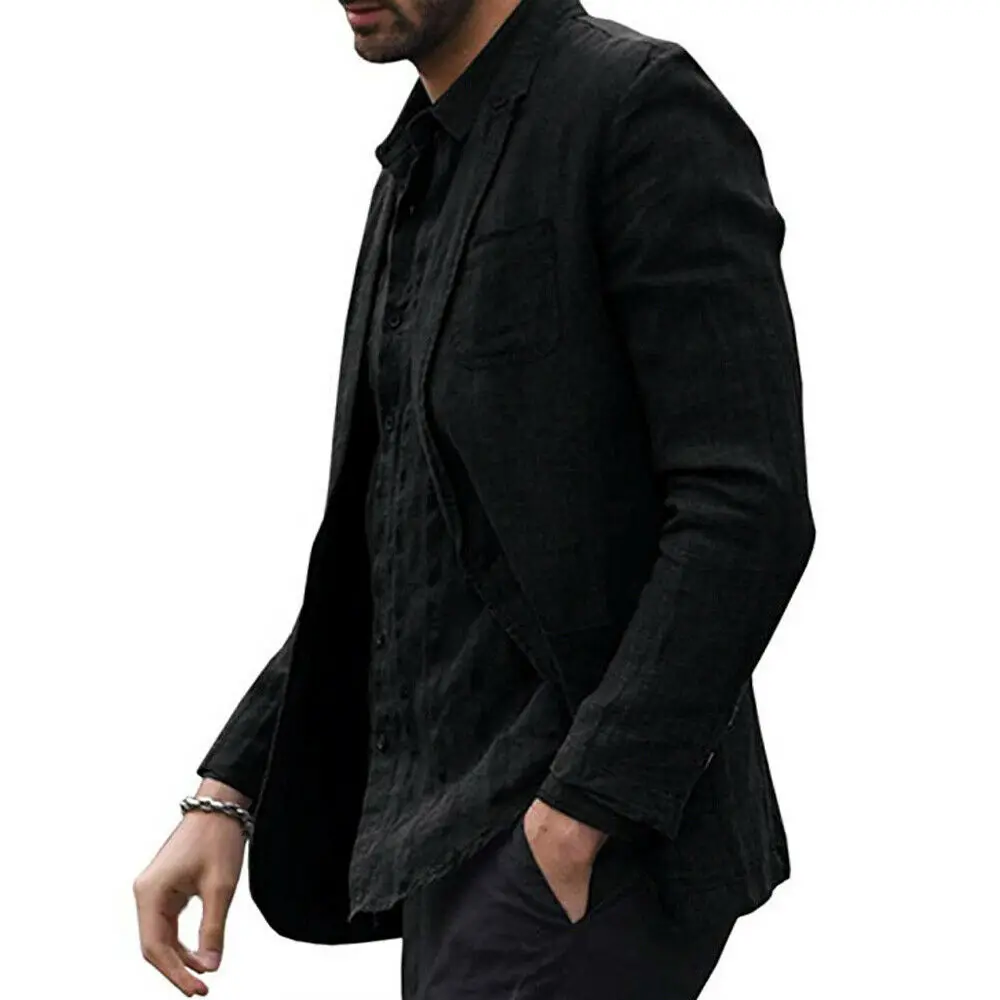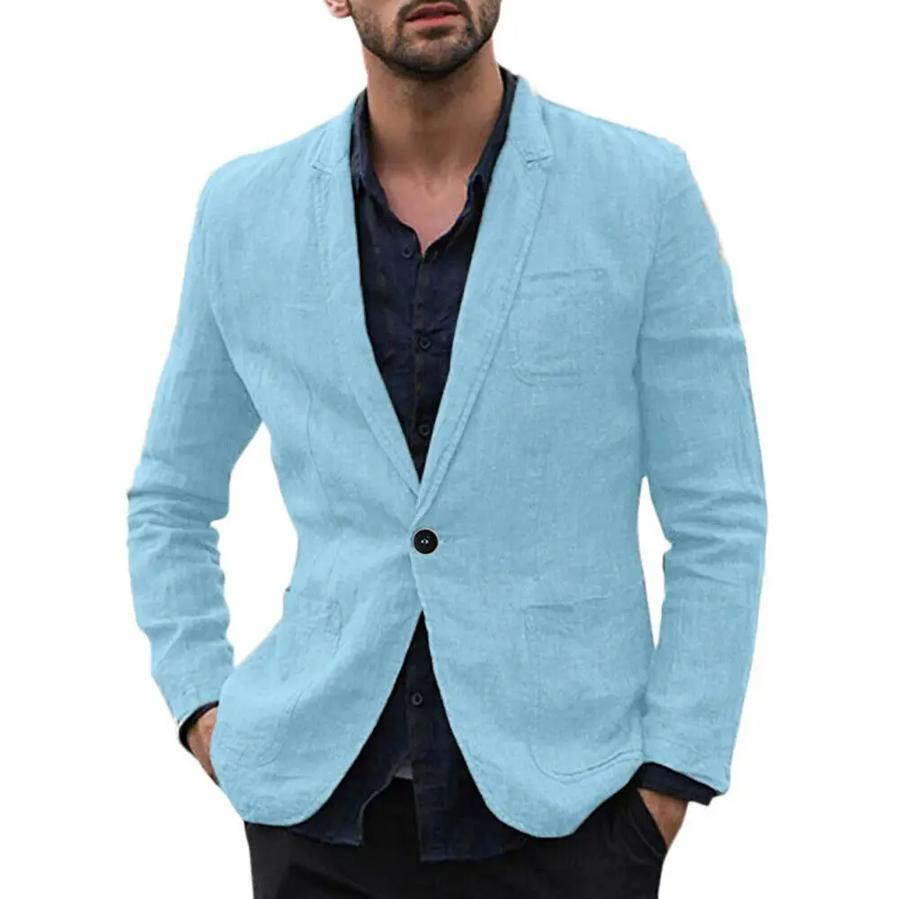 2019 мужской костюм с одной пуговицей из хлопка и льна Повседневное костюм Для мужчин широкий лацкан с тупым углом жениха Бизнес Блейзер размера плюс