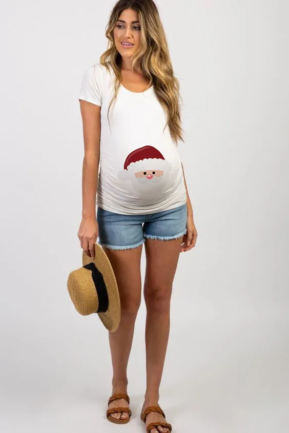 Модные Рождественские футболки для беременных женщин с Санта-Клаусо...