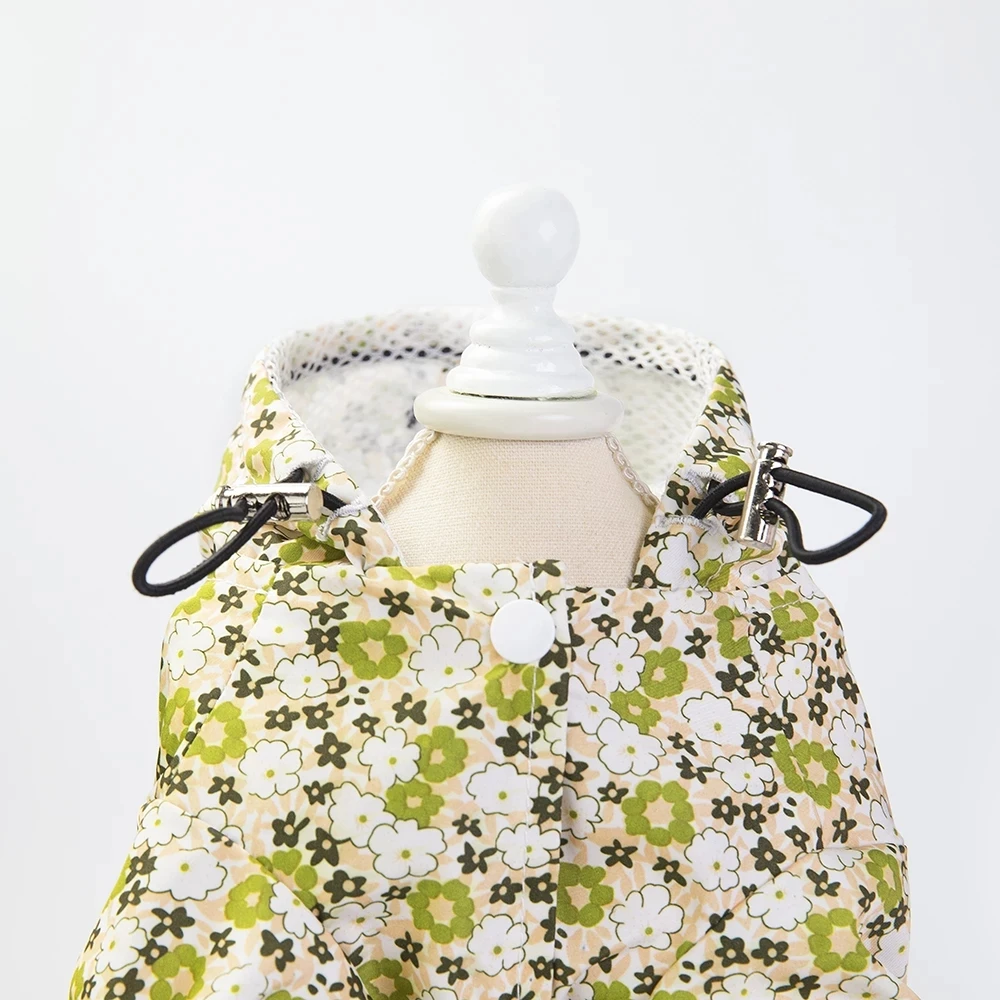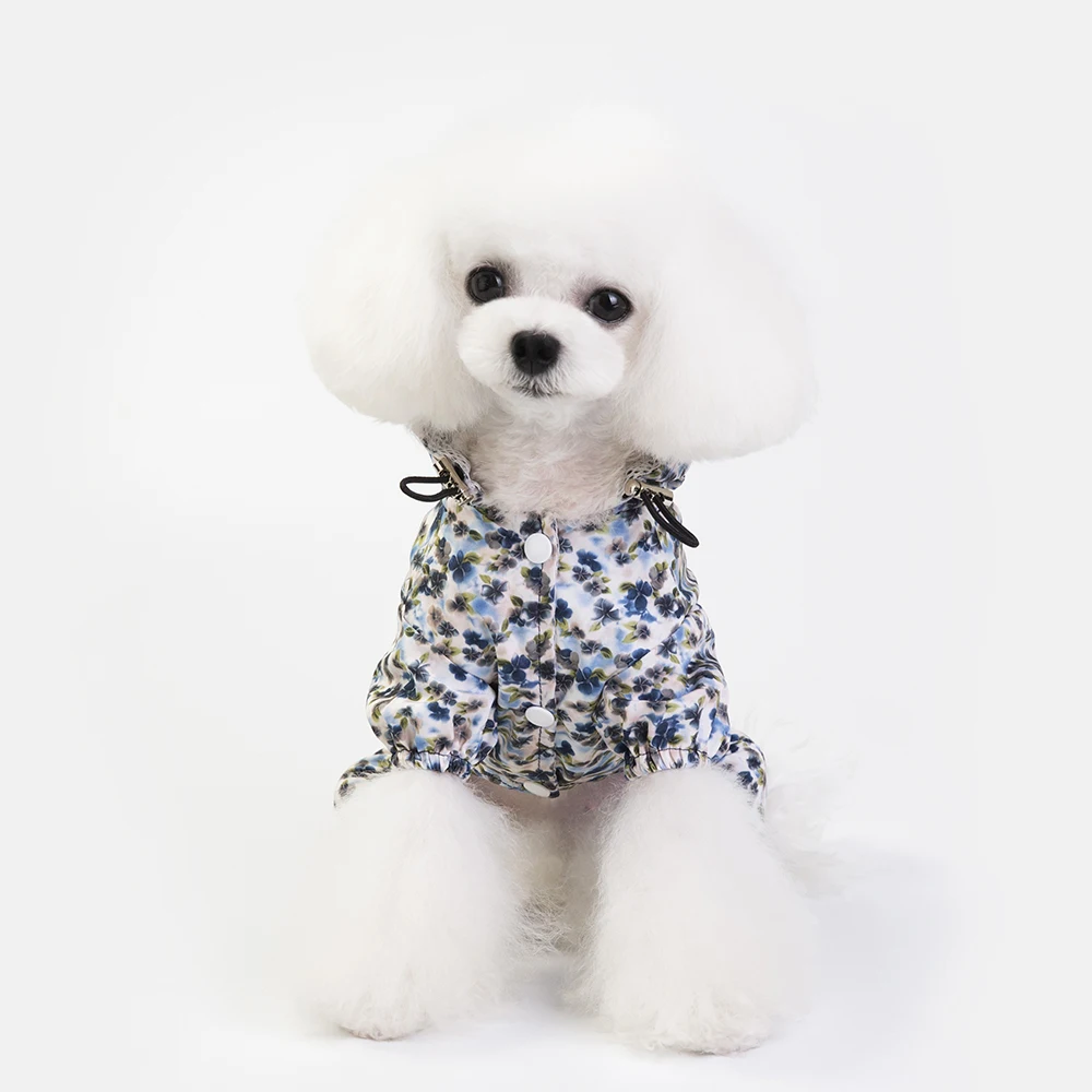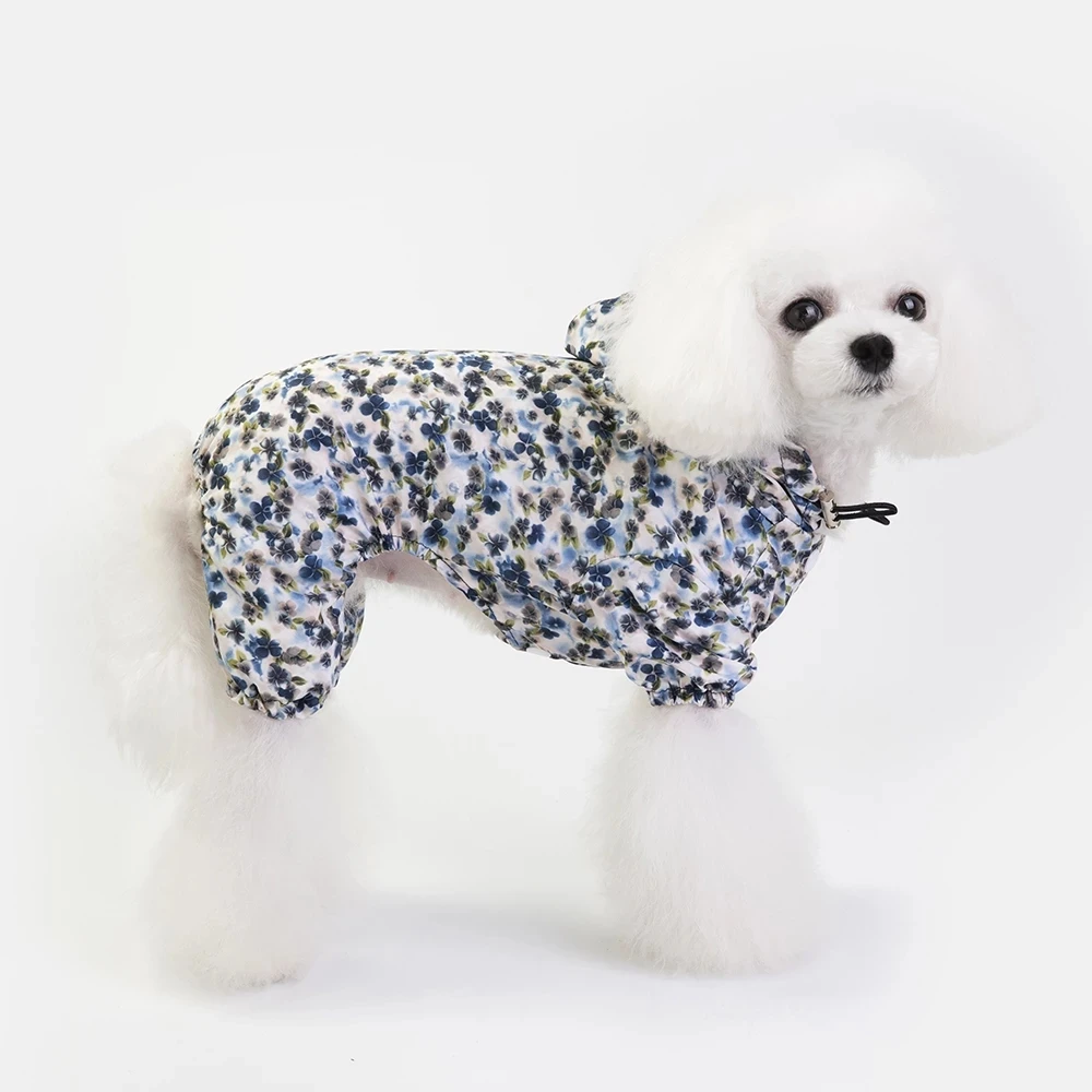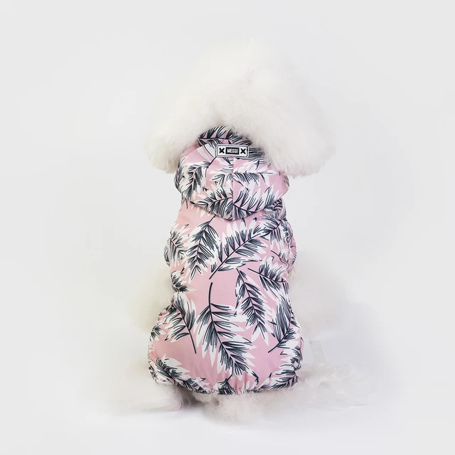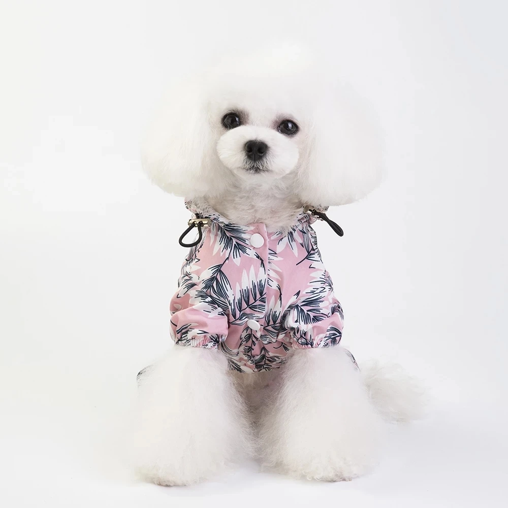 Дождевик с принтом растений для маленьких средних собак, водонепроницаемый комбинезон, Одежда для питомцев, куртка с капюшоном, 4 пуговицы, верхняя одежда