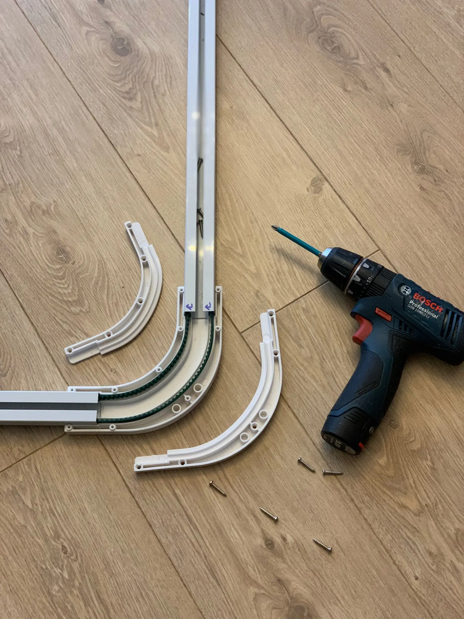 пришли, думал уже не придут, короче отпилены продавцом криво, направляющие шторы утыкались в швы, слава богу с болгаркой я дружу, подпилил подровнял и все пошло по маслу