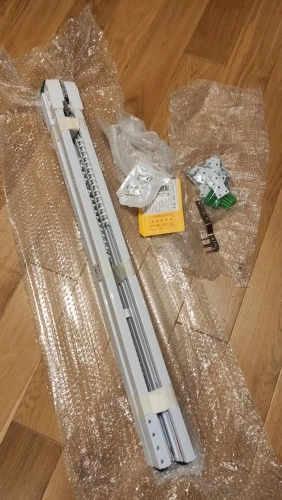 Ехало в Кемерово долго. Частями. Первым приехали 5 запасных роликов для карниза, приехали в течении 2-х недель. Затем спустя месяц, приехал двигатель с аккумулятором. Двигатель красивый, тихий, эргономичный, софттач пластик. Двигатель работает по протоколу zigbee, видимо, и в чистом виде не управляется кроме как вручную. Зарядник под Китайскую вилку, но можно заменить универсальным ноутбучный на 18 вольт 2 ампера, с нужным штекером. Затем приехал карниз, в Москве застрял на этапе отгрузки со склада, почти 2 месяца добирался, но вроде целый. Установлю дополню отзыв, если не лень будет. Карниз брал 4 метра, раздвижка в обе стороны одновременно. Двигатель aqara b1 с аккумулятором в комплекте.