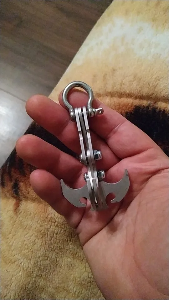 Очень хороший гаджет! Работает как рекламируемый, крючок будет даже затачивать плоский предмет, как карандаш. Изготовлено из нержавеющей стали толщиной 2 мм, а ушко также из нержавеющей стали. Болты и гайки-это простые металлические монтажные детали, но это нормально. Общая длина составляет 8,8 мм, как указано в описании изделия. Также вставка, чтобы сделать ее четырехточечной, действительно хорошая. Товар прибыл с медленной доставкой в течение 6 недель, подсчитывается с даты размещения заказа до прибытия на мой порог в Нидерландов.