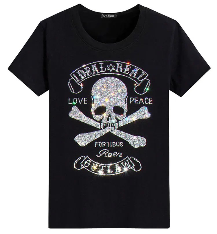 Футболка мужская со сверкающим черепом, тенниска с коротким рукавом, Повседневная футболка с черепами, Азиатский Размер, лето 2021