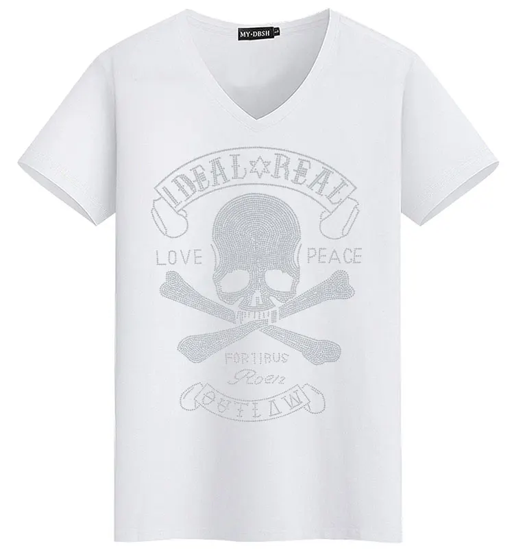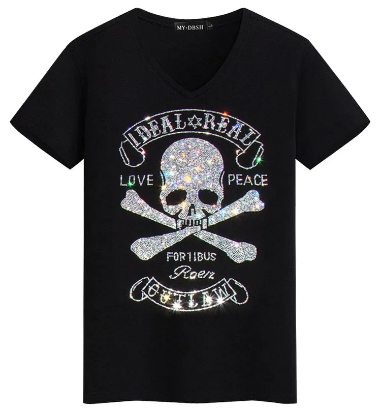 Мужская футболка с коротким рукавом, Блестящая футболка со сверкающим черепом, мужская повседневная футболка стразы, Азиатский Размер, лето 2021