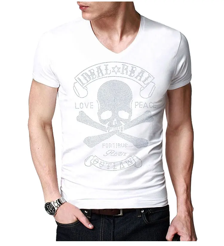 StyleMan's Casual Rhinestone Skulls Tshirt