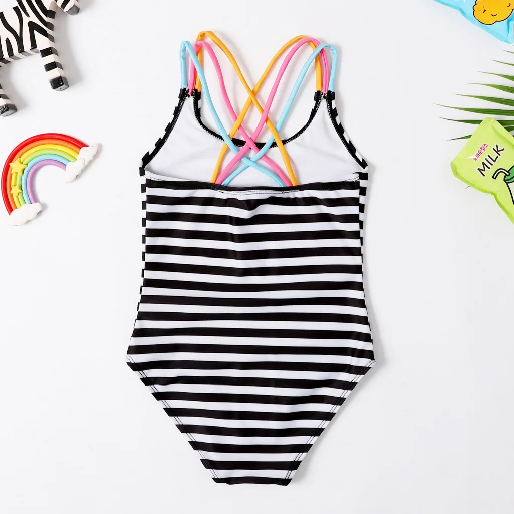 Купальники для девочек, черные, слитные, с принтом фламинго