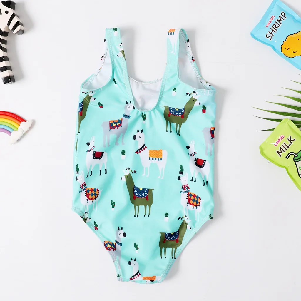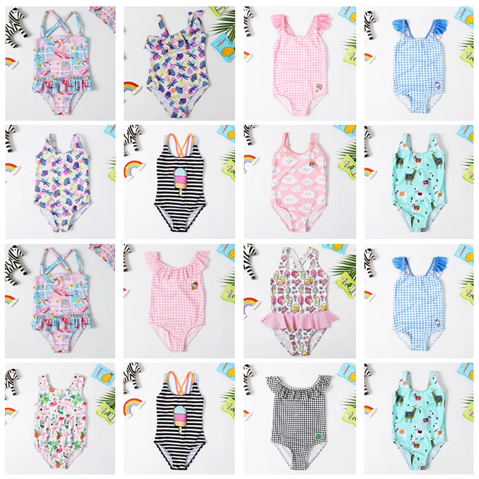 2021 Новый Цельный купальник для девочек, От 2 до 9 лет детский купальник с фламинго, новый купальный костюм для девочек, пляжная одежда для плавания