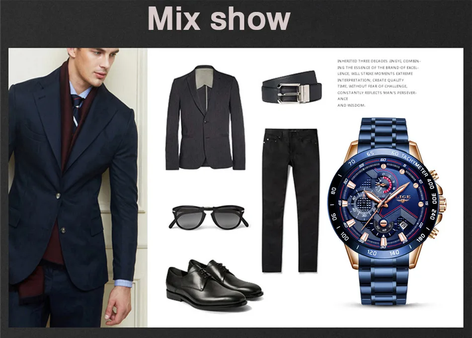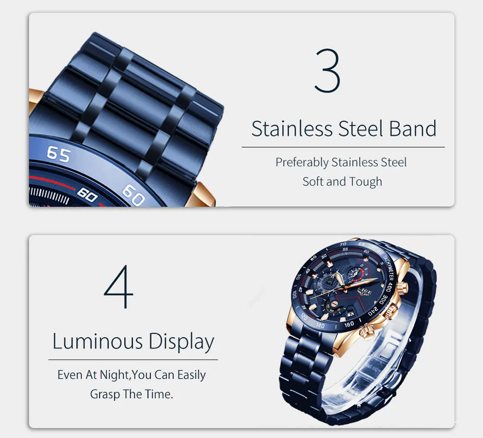 LIGE новые синие модные деловые часы, мужские часы, лучший бренд, Роскошный хронограф из стали, Кварцевые Золотые часы для мужчин, мужские часы