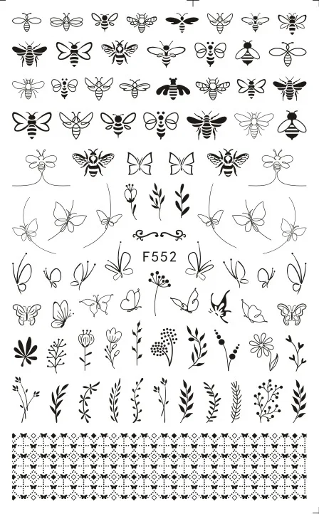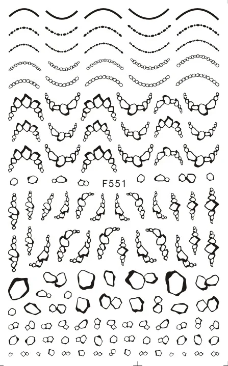 Параметры: Количество: 1 лист Цвет: черный, белый, золотой, серебристый Посылка Содержание: 1 лист 3D наклейки для ногтей Как использовать: 1. Очистите поверхность, где будет размещен дизайн. 2. Если вам нравится дизайн и отделите на ноготь. (Не прикасайтесь к клею) 3. Поместите дизайн в ноготь/кончик и аккуратно протрите его несколько раз. 4. Нанесите верхнее пальто для лучшего результата. Примечание: Не наносите наклейки на чувствительную кожу. Не рекомендуется для маленьких детей.