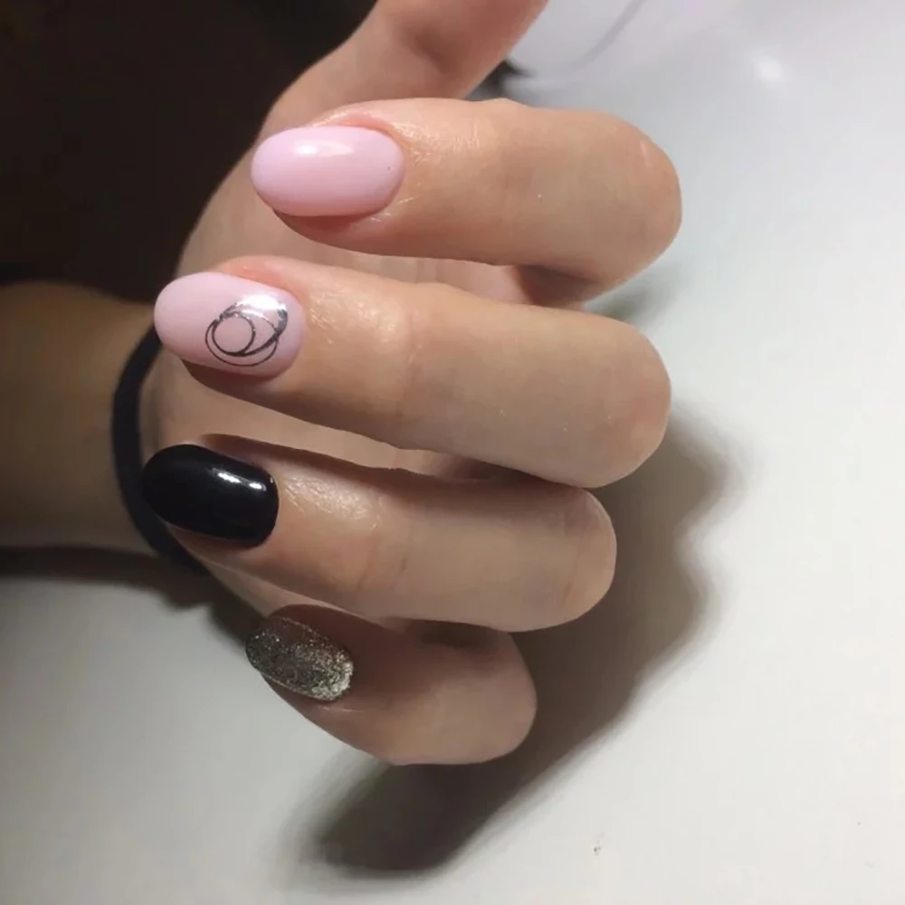 1 шт. стикер для ногтей, черныйбелыйзолотойсеребристый, круглые Геометрические линии, 3D стикер для дизайна ногтей, клейкий слайдер