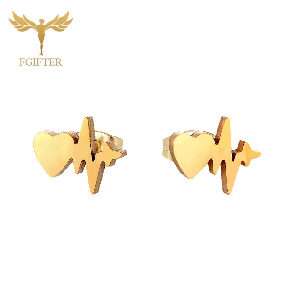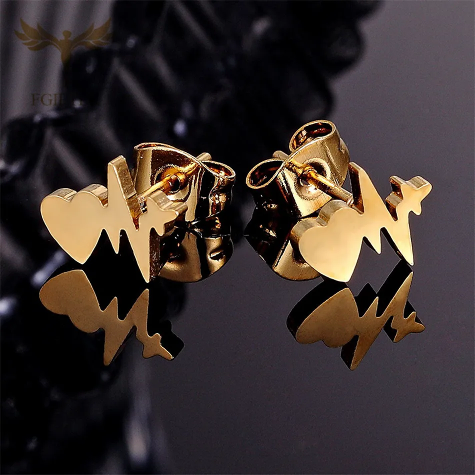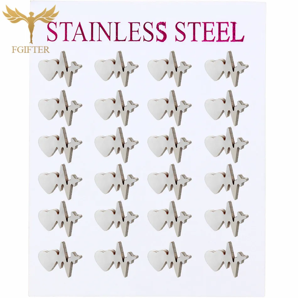 сережки сердечки Романтический ЭКГ сердце серьги-гвоздики оптом 12 пар один набор серьги из нержавеющей стали ювелирные изделия пирсинг серьги