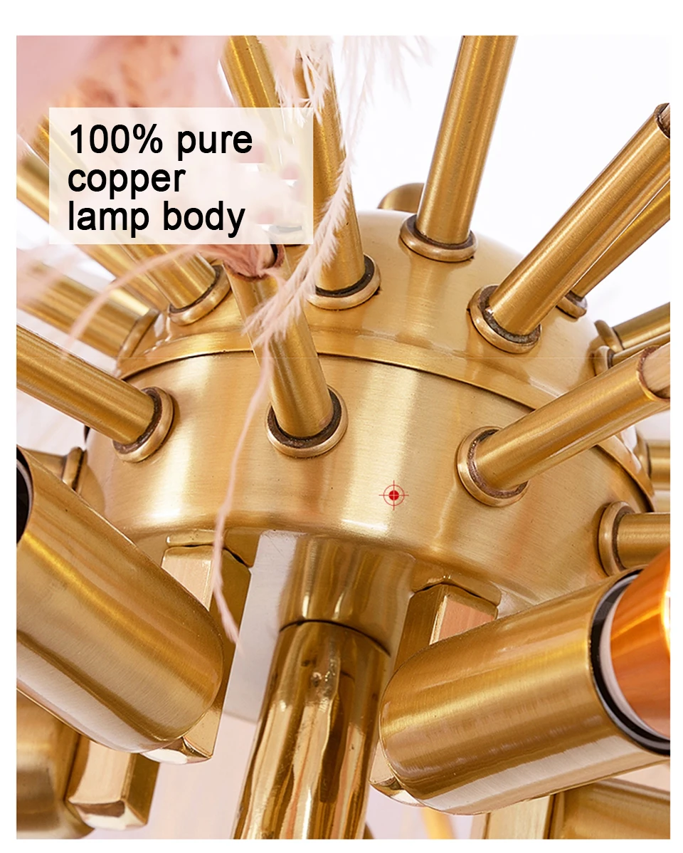 Современный роскошный торшер из страусиных перьев, золотой торшер, медный, латунный, полимерный, нордический стоячий светильник для виллы, трипота гостиничный декоративный светильник