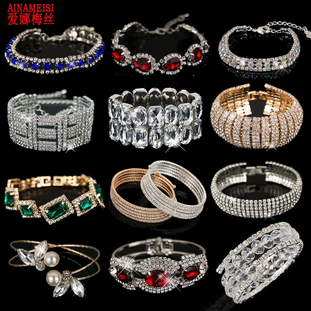 AINAMEISI Модные женские свадебные браслеты и браслеты с кристаллами полностью блестящие стразы невеста любовь очаровательные звенья цепочка браслет ювелирные изделия