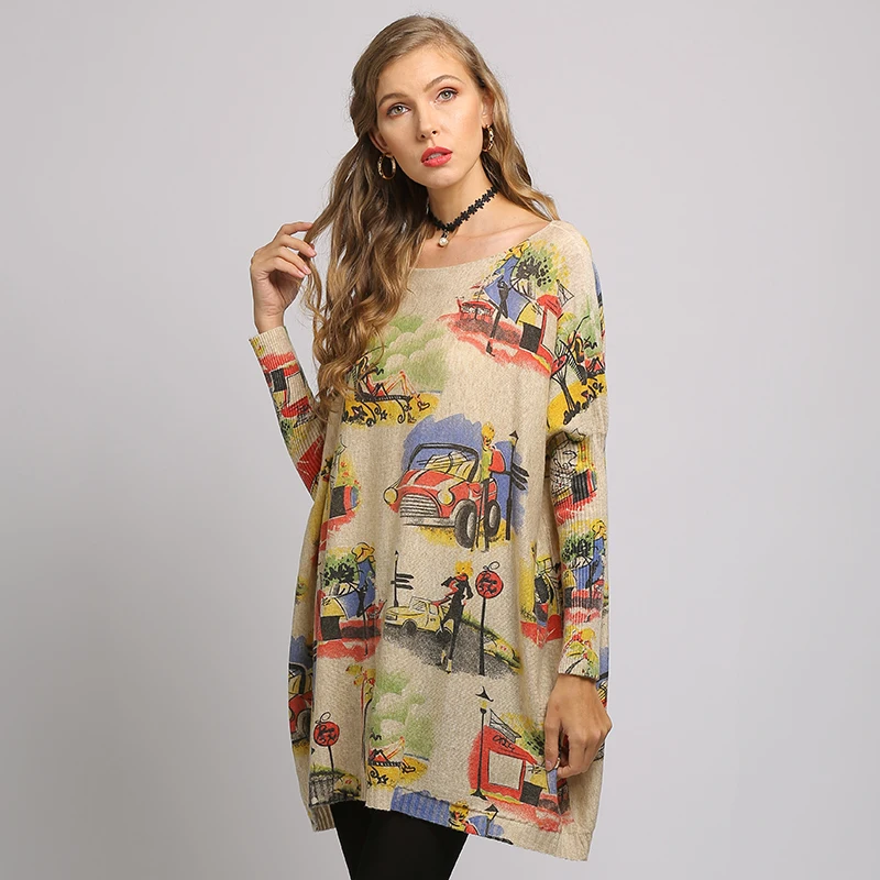 Женский длинный свитер, пуловер оверсайз с рукавами летучая мышь