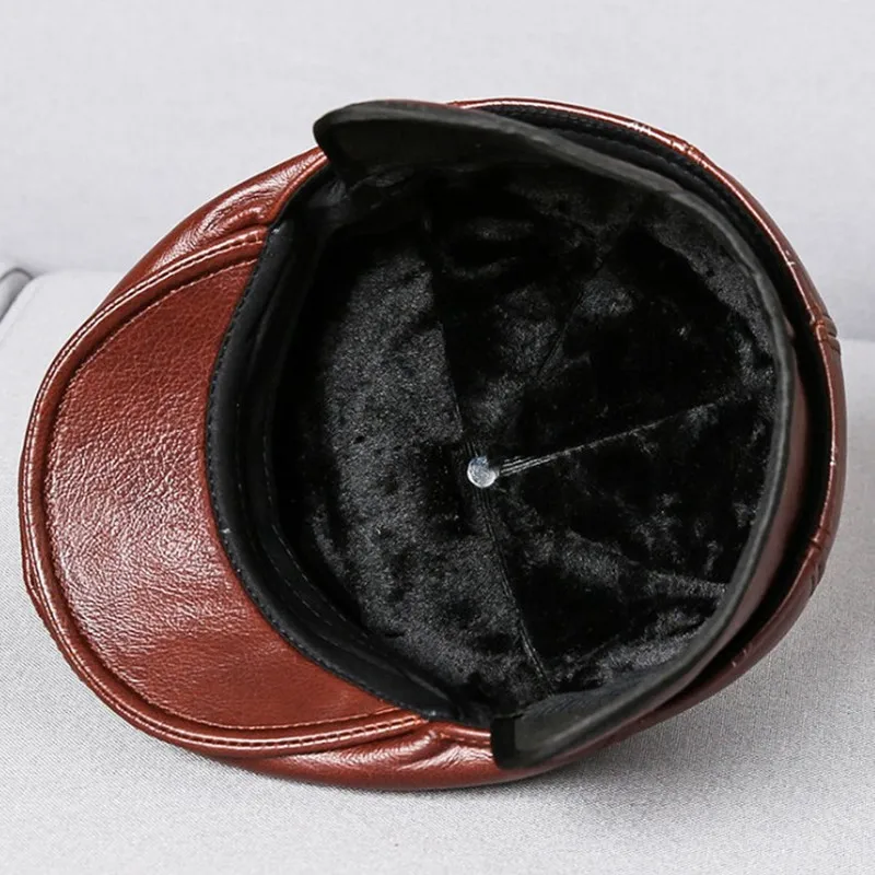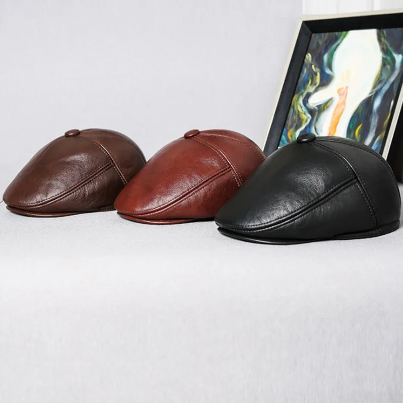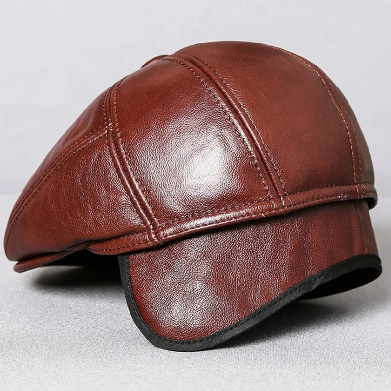 Зимняя шапка с наушниками, мужские береты из воловьей кожи, шапка и...