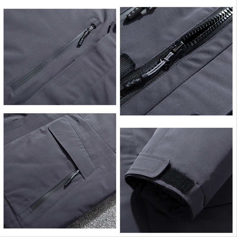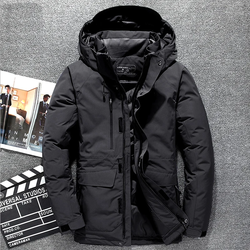 Высокое качество, белая куртка на утином пуху, Мужская Толстая зимняя 2019 НОВАЯ шапка, отсоединенная теплая парка, водонепроницаемая ветрозащитная -30 градусов