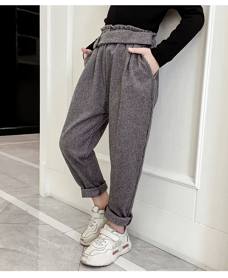 Штаны для девочек-подростков коллекция 2022 года, Осенние повседневные Модные свободные штаны-шаровары в полоску в стиле ретро школьные детские штаны для детей возрастом 6, 8, 10, 12 лет