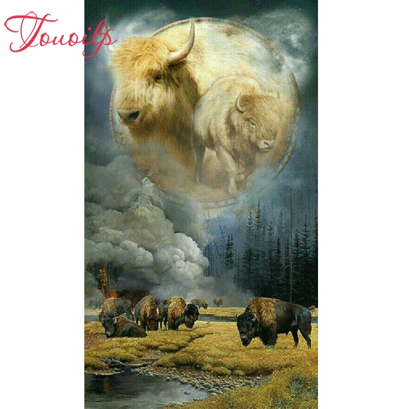 Алмазная 5D картина TOUOILP сделай сам, вышивка крестиком в виде животных, леса, крупного рогатого скота, мозаика, Декор для дома