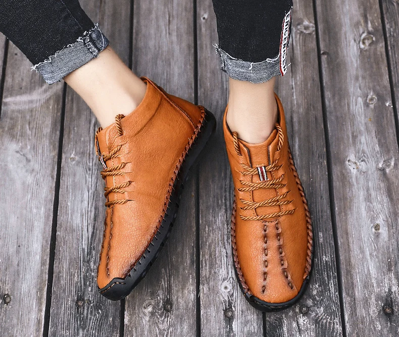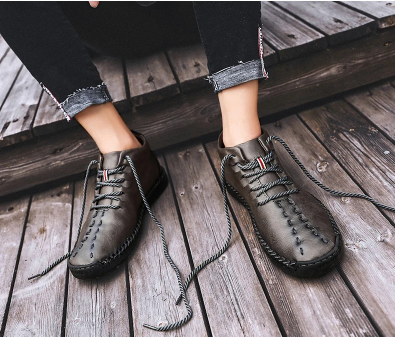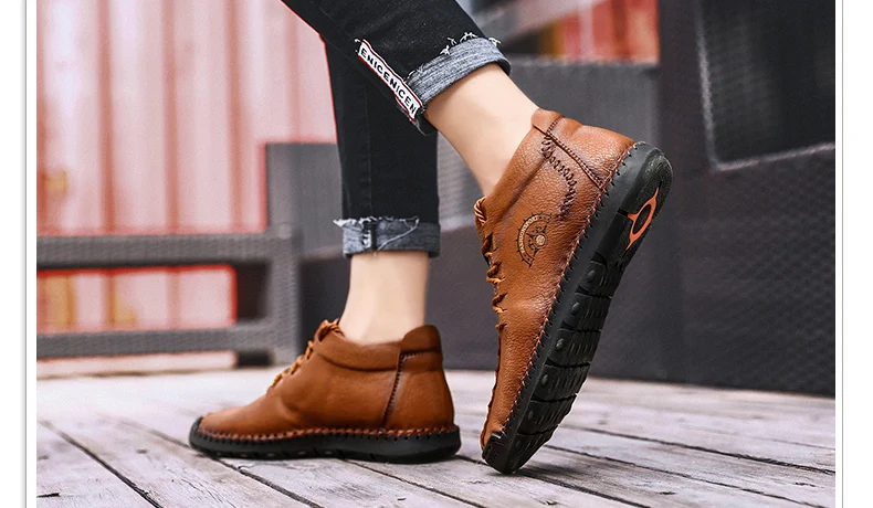 Мужские зимние водонепроницаемые кожаные ботильоны, теплые плюшевые ботинки, модная повседневная обувь для весны и осени, большие размеры 39-50