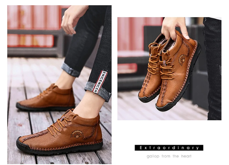 Зимние Модные Кожаные мужские ботинки; Теплые плюшевые ботильоны с ...